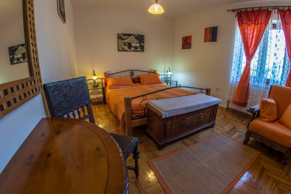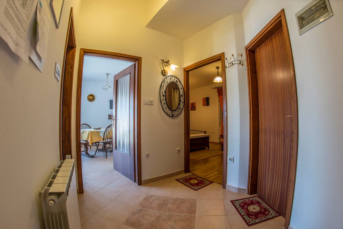 Das Badezimmer verfügt über eine Badewanne/Dusche, Waschbecken mit Spiegel, Bidet und Klosettschüssel. Im Bad finden Sie den Bügeleisen und Bügelbrett, als auch der Fön. Sie können auch Ihre Waren waschen, in Absprache mit dem Besitzer und in der Villa ausgestattet mit der Waschmaschine. Vom Bad kommen Sie zum Balkon, der zum Trocknen der Kleidung geignet ist. Die Ferienwohnung verfügt über ein geräumiges Schlafzimmer mit einem Doppelbett (160/200 cm groß), die Frisierkommode, ein Sofa und einen großen Kleiderschrank. Der zweite Raum ist mit zwei Einzelbetten (80/200 cm groß) eingerichtet, Schrank für Kleidung und Sat-TV. Vom Zimmer kommen Sie auf das Balkon mit Blick an den Garten der Villa und den umliegenden Wald. Appartement ist speziell gereinigt und desinfiziert mit Dampfreiniger.
