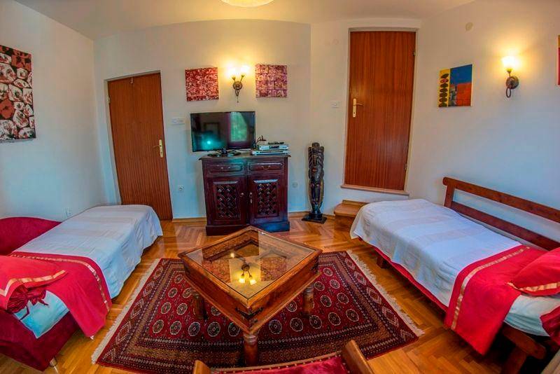 Mavero Villa befindet sich in einem kleinen alten Fischerdorf Banjole und in Teil Kastanjez, die den nördlichen Teil der Seite des Meeres ist. Die Villa befindet sich in einem schönen Park voller Blumen Bäume und saisonale Blumen, 150m vom Meer entfernt.