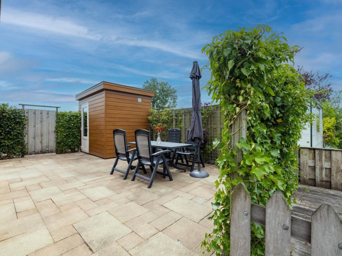 Anlegesteg, Terrasse(alleinige Nutzung, umzäunt, 25 m²), 10x Parkplatz(auf allgemeinen Parkplatz), Spielgeräte(Gemeinschaftliche Nutzung mit anderen Gästen), 1x Kinderbett (ohne Bettwäsche), 1x Hochstuhl, Gartenhaus mit Tiefkühlschrank, Waschmaschine