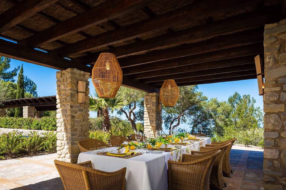 Die Villa bietet großzügige Außenbereiche mit Ess- und Loungebereich sowie einen privaten beheizten Swimmingpool mit den Maßen 12 x 5,5 Meter.