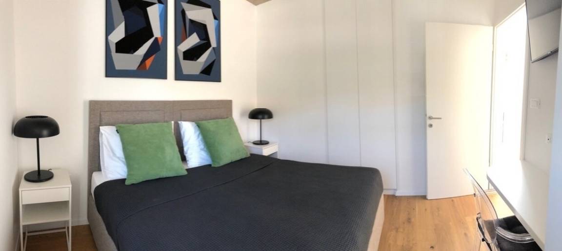Das Schlafzimmer verfügt über 2 Einzelbetten 200 x 90, die Einzelbetten oder ein Doppelbett sein können. Es gibt auch einen Kleiderschrank, einen Schreibtisch, einen LCD-Smart-TV und Designerlampen von Artemide
