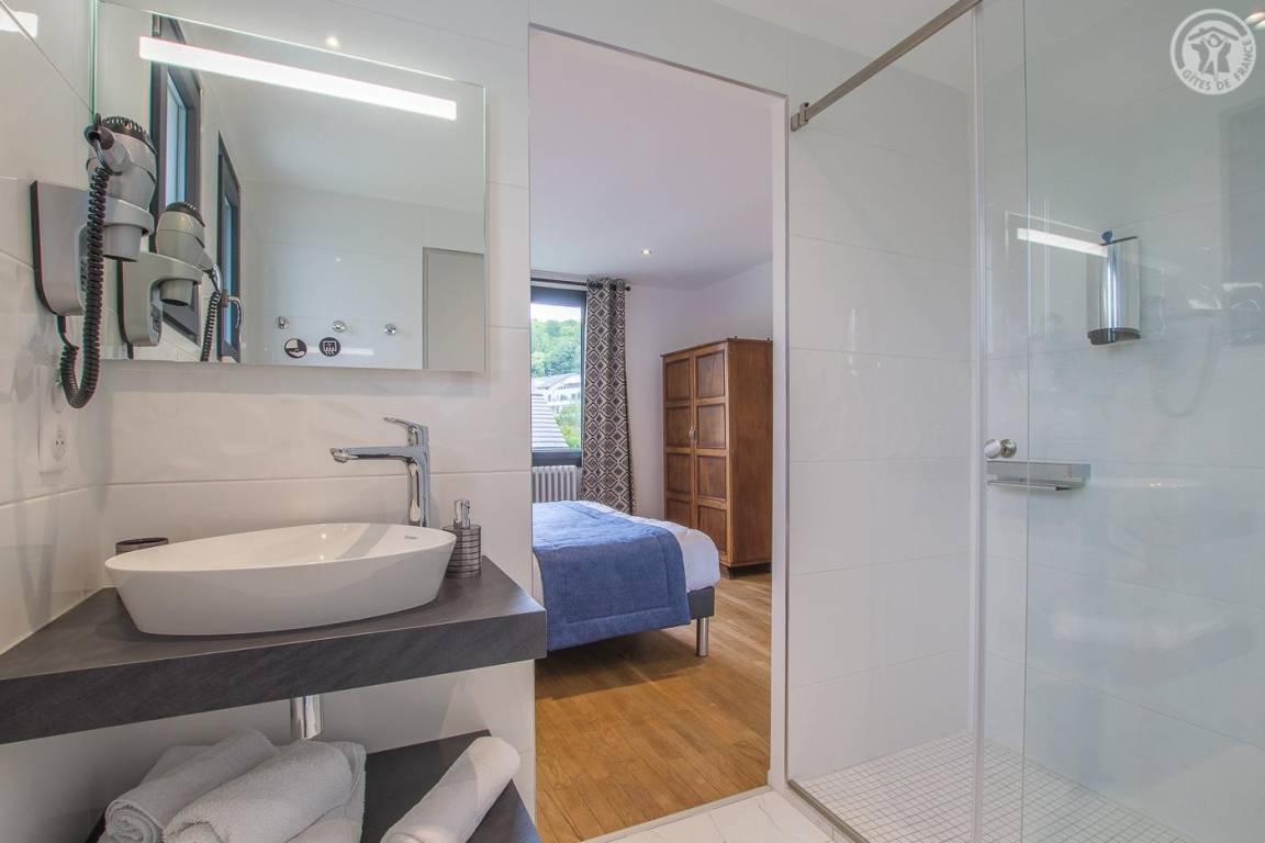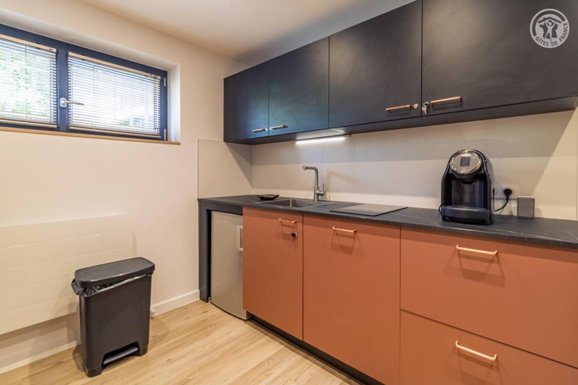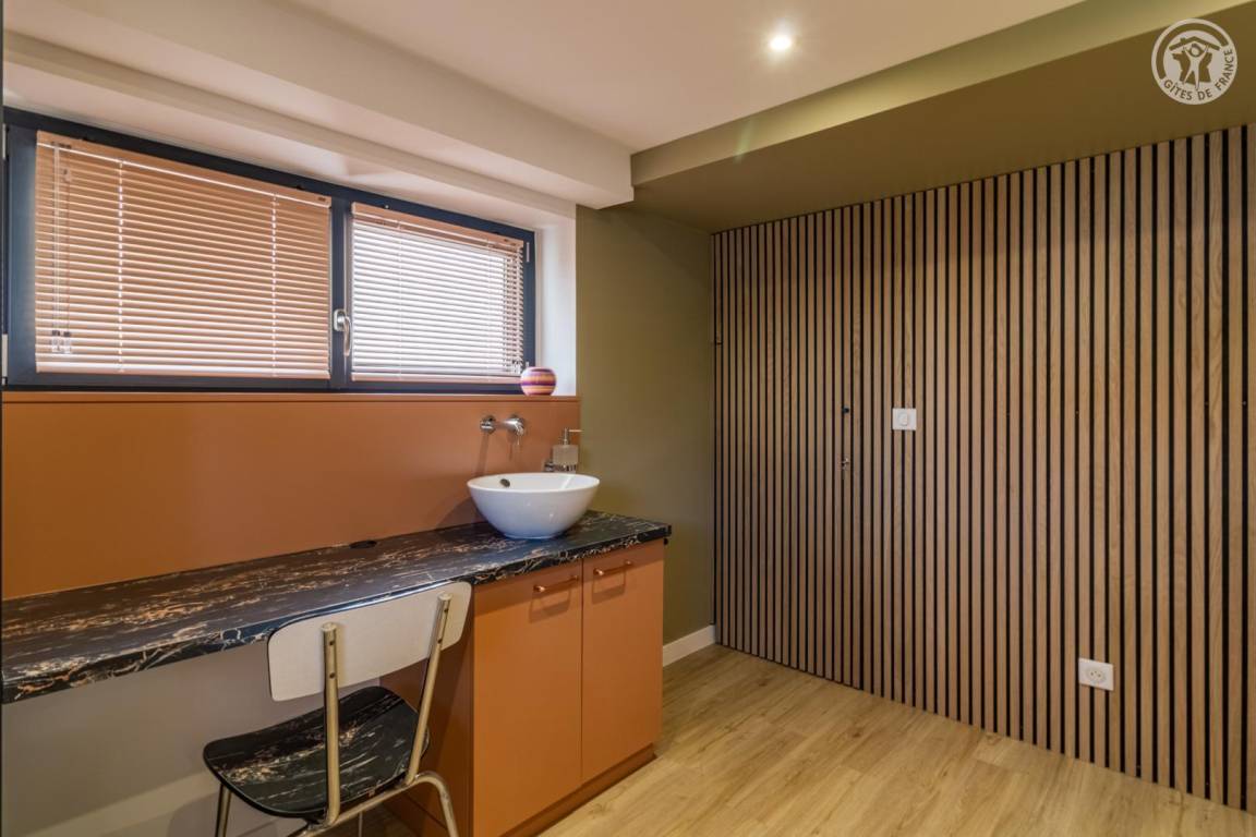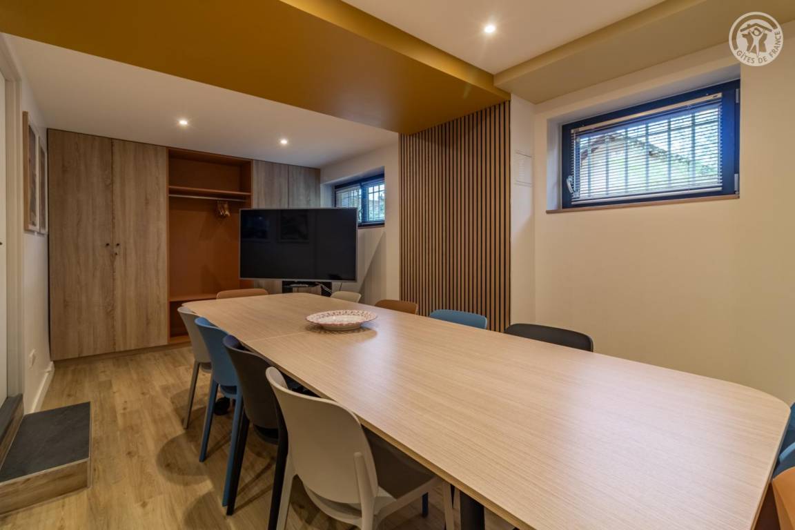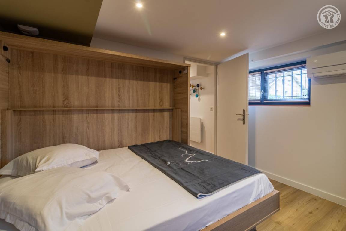 Stadthaus bestehend aus 2 Gîtes auf 2 Ebenen. Im Erdgeschoss (Suite): Küche mit Essbereich, Wohnzimmer mit großem Tisch, der als Besprechungsraum mit Tafel und TV genutzt werden kann. Ein umwandelbares Sofa für 2 Personen (160 x 200 cm) und ein Büroraum. 1 Schlafzimmer (1 Doppelschrankbett 160 x 200 cm) mit Waschbecken. Badezimmer (Dusche) und separates WC. Im 1. Stock (Gite): ein weiteres Wohnzimmer-Küchen-Lounge mit SmartTV, Chromcast und Canal+-Kanälen. Zugang zur Balkon-Terrasse. 2 Schlafzimmer (1 Schlafzimmer mit Doppelbett 160 x 200 cm / 1 Schlafzimmer mit zwei kombinierbaren Einzelbetten 90 x 200 cm) mit Duschbad und separatem WC in jedem Schlafzimmer. Fernseher, Bluetooth-Lautsprecher und Schreibtisch in jedem Zimmer. Raum für Sportaufbewahrung und Bereitstellung von 4 Fahrrädern, davon 2 elektrisch unterstützt. Hydrotherapie-Spa, Gemeinschaftspool, Tischtennisplatte, Pétanque-Platz, Außensauna (Fass): siehe Geschäftsbedingungen beim Eigentümer.