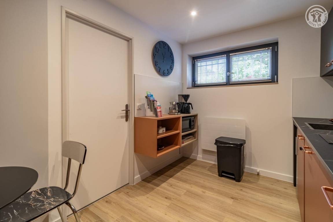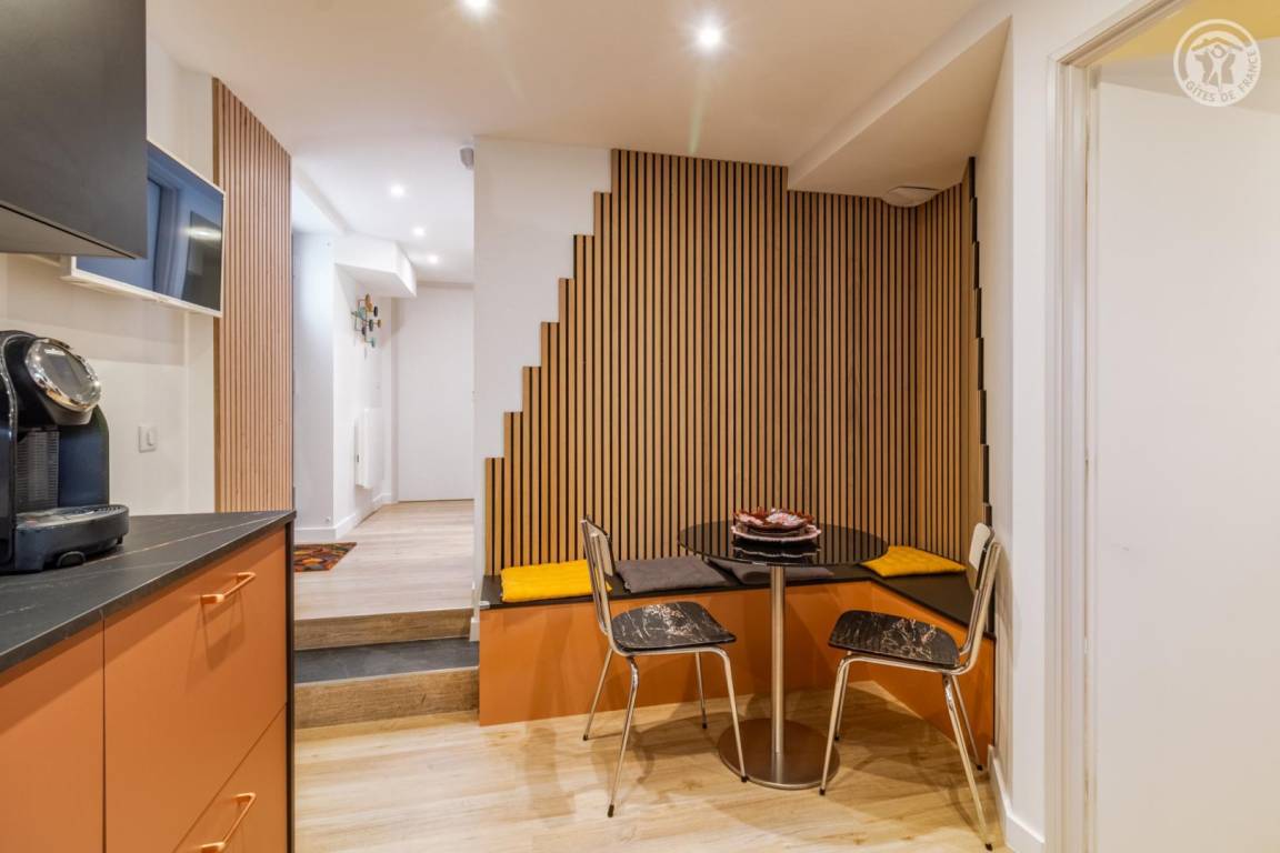 Elegantes Stadthaus, in dem sich Geschmack und Stil zu einem raffinierten Ambiente vereinen. Zwei sehr unterschiedliche Räume vereinen sich in ein und demselben Ferienhaus und bieten optimalen Komfort. Die sorgfältige Dekoration vereint Modernität und Raffinesse, während die Bettwäsche in Hotelqualität für angenehme Nächte sorgt. Ein Raum, der modernen Komfort und hochwertige Ausstattung vereint, sorgfältig von Alain und Pascal entworfen, im Herzen eines dynamischen und praktischen Bereichs.