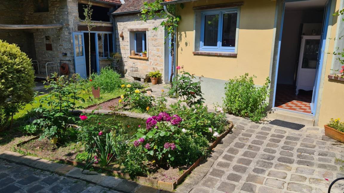 An sonnigen Tagen können Sie den typischen Brie-Innenhof mit seiner überdachten Terrasse, den Gartenmöbeln und dem Fischteich genießen.