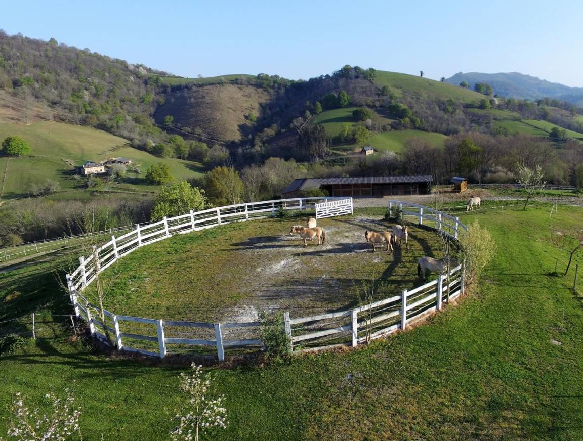 Im Herzen eines geschlossenen Grundstücks mit 46 Hektar Wald und Wiesen befindet sich auf seinem natürlichen Vorgebirge der Bauernhof Phordoy.