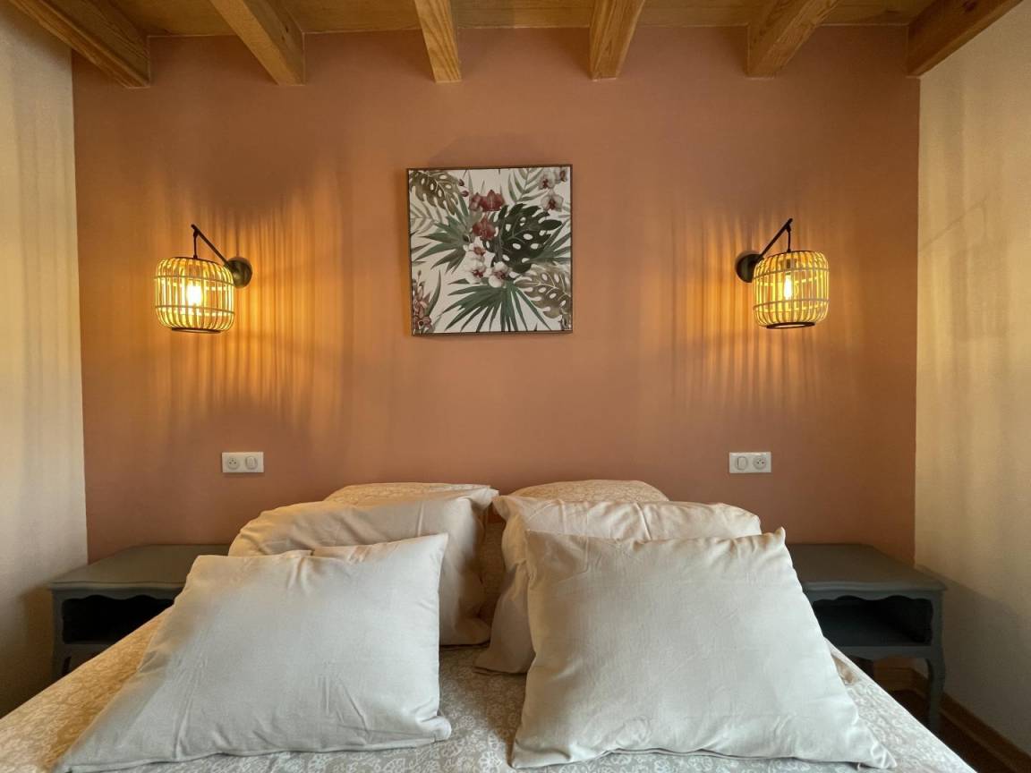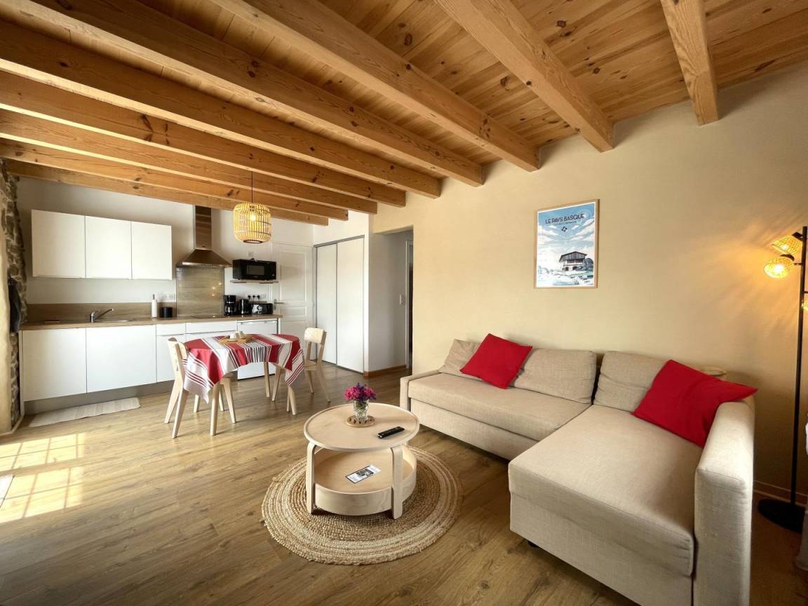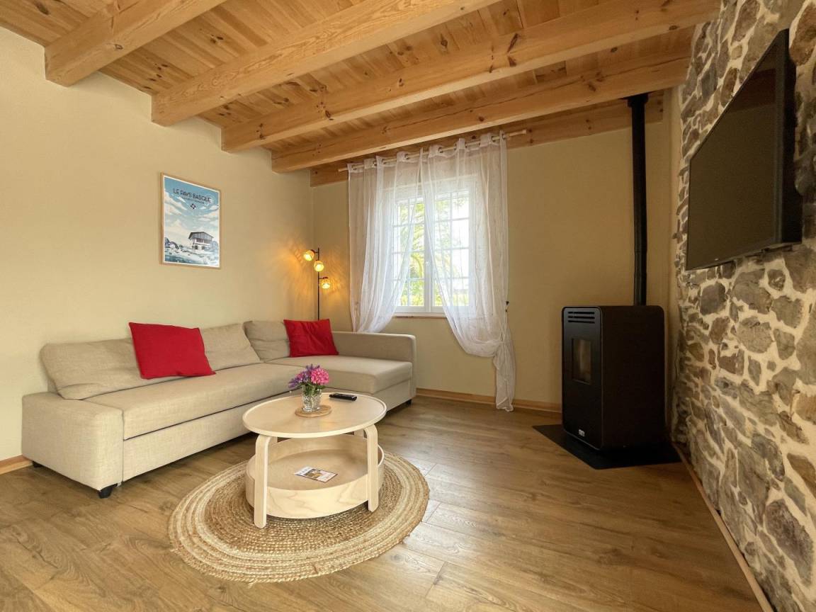In einem kleinen Ferienhaus, dem ehemaligen Heuboden eines renovierten baskischen Bauernhauses aus dem 16. Jahrhundert.