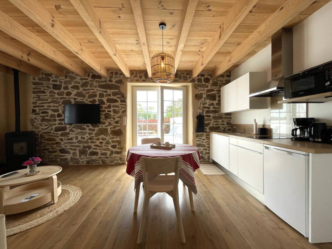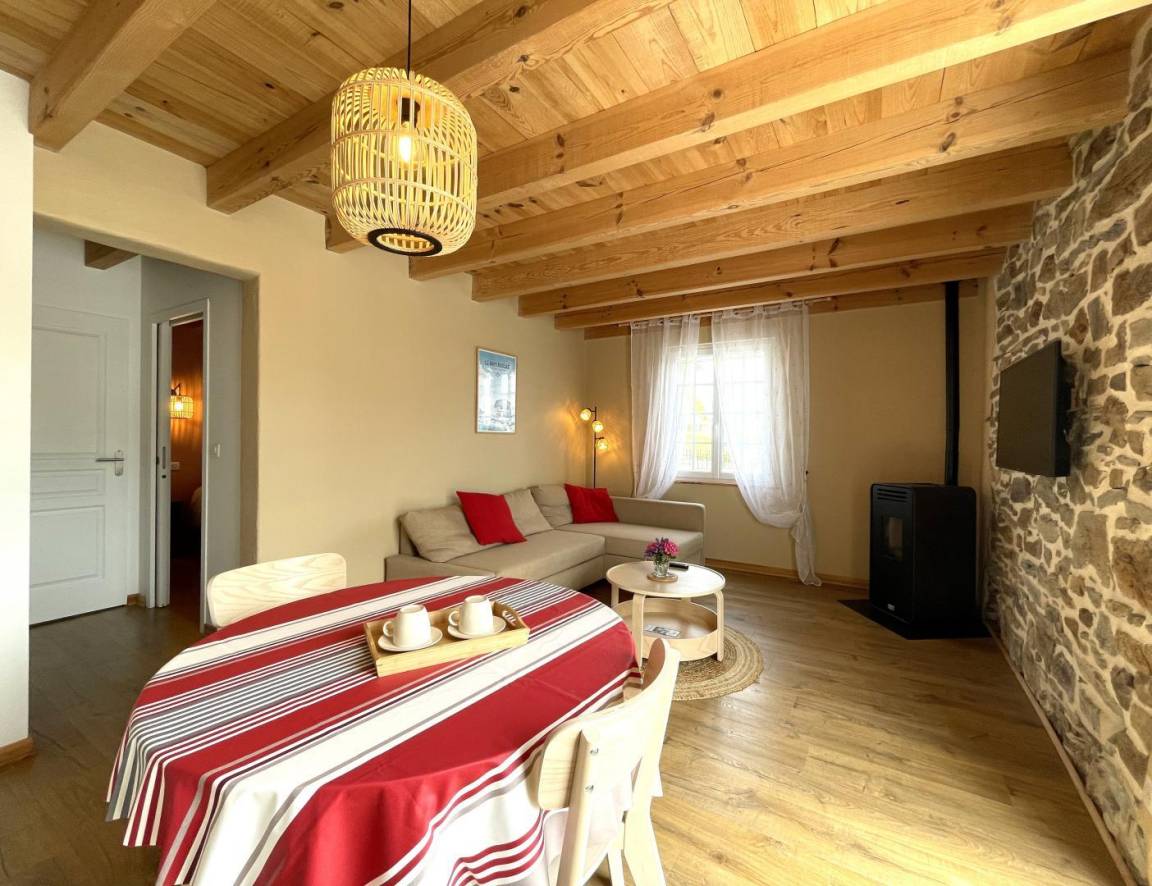 „Gîte conforme aux photos, cosy et fonctionnel. Situé en pleine campagne, idéal pour ceux qui aiment le calme. Nous y retournerions sans hésiter.“