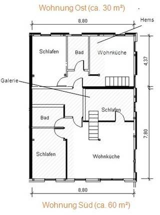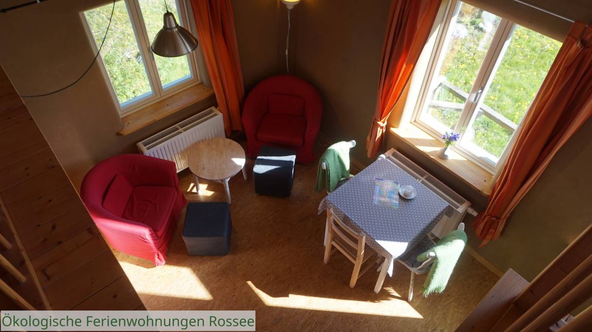 Die gemütliche, helle Ferienwohnung hat eine schöne Wohnküche mit Hems (offener Raum unter der Dachschräge - größtenteils keine Stehhöhe) und ein separates Schlafzimmer.