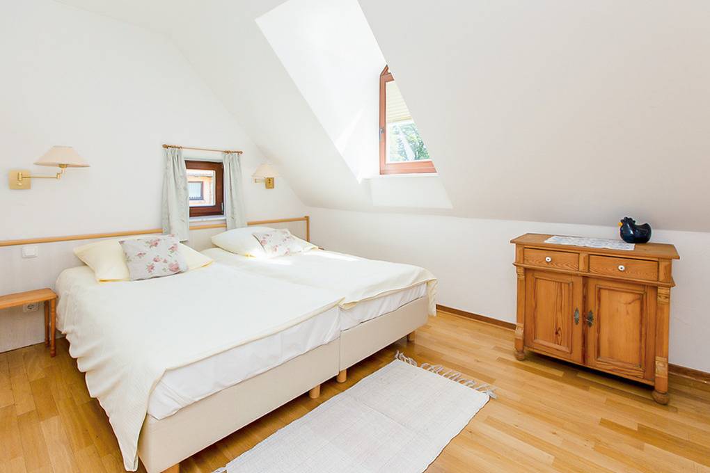 Nebenkosten Endreinigung 90 € (wird bei Buchung erhoben). Bettwäsche, Handtücher stellt der Vermieter 20 €/Pers (wird bei Buchung erhoben). Zusätzliche Leistungen Kostenloser Internetzugang über W-Lan. 1 Pkw-Stellplatz im Preis inklusive. Frühstück auf Wunsch 16,50 €/ Pers (Anmeldung, Bezahlung vor Ort). See-Sauna nach Verbrauch (22 € erste Stunde, danach 11 €/Stunde). 2 Ruderboote kostenfrei nutzbar (nach Verfügbarkeit, Gemeinschaftsnutzung). SUP, 2er Kajak leihbar 10 €/h, 30 €/4h. Kinder Babybett zusätzlich zur maximalen Personenzahl 10 €/Aufenthalt (Bestellung). Hochstuhl ohne Berechnung (Bestellung). Haustier 10 €/Übernachtung, max. 2 Hunde (Anmeldung, wird bei Buchung erhoben).Räume & Aufteilung