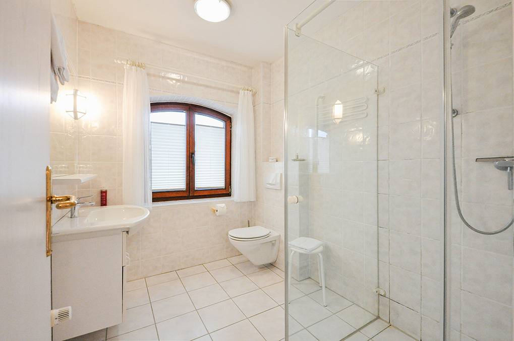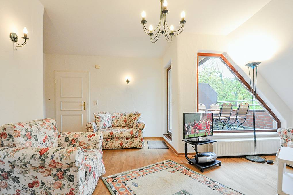 Haus: Beliebtes Gästehaus mit 7 schönen Ferienwohnungen und mehreren Hotelzimmern. Alle Fewos mit Wasserblick. Geschmackvolle Einrichtung im Landhausstil, moderne Ausstattung mit Hotel-Komfort (bezogene Betten bei Anreise, Safe, Haar-Fön, Handtuchwärmer im Bad). Internet über W-Lan. Zentralheizung. Nichtraucherwohnungen. Balkon oder Terrasse mit Sitzmöbeln. Überdachter Fahrrad-Port. 1 Pkw-Stellplatz pro Fewo (großer Parkplatz am Haus).