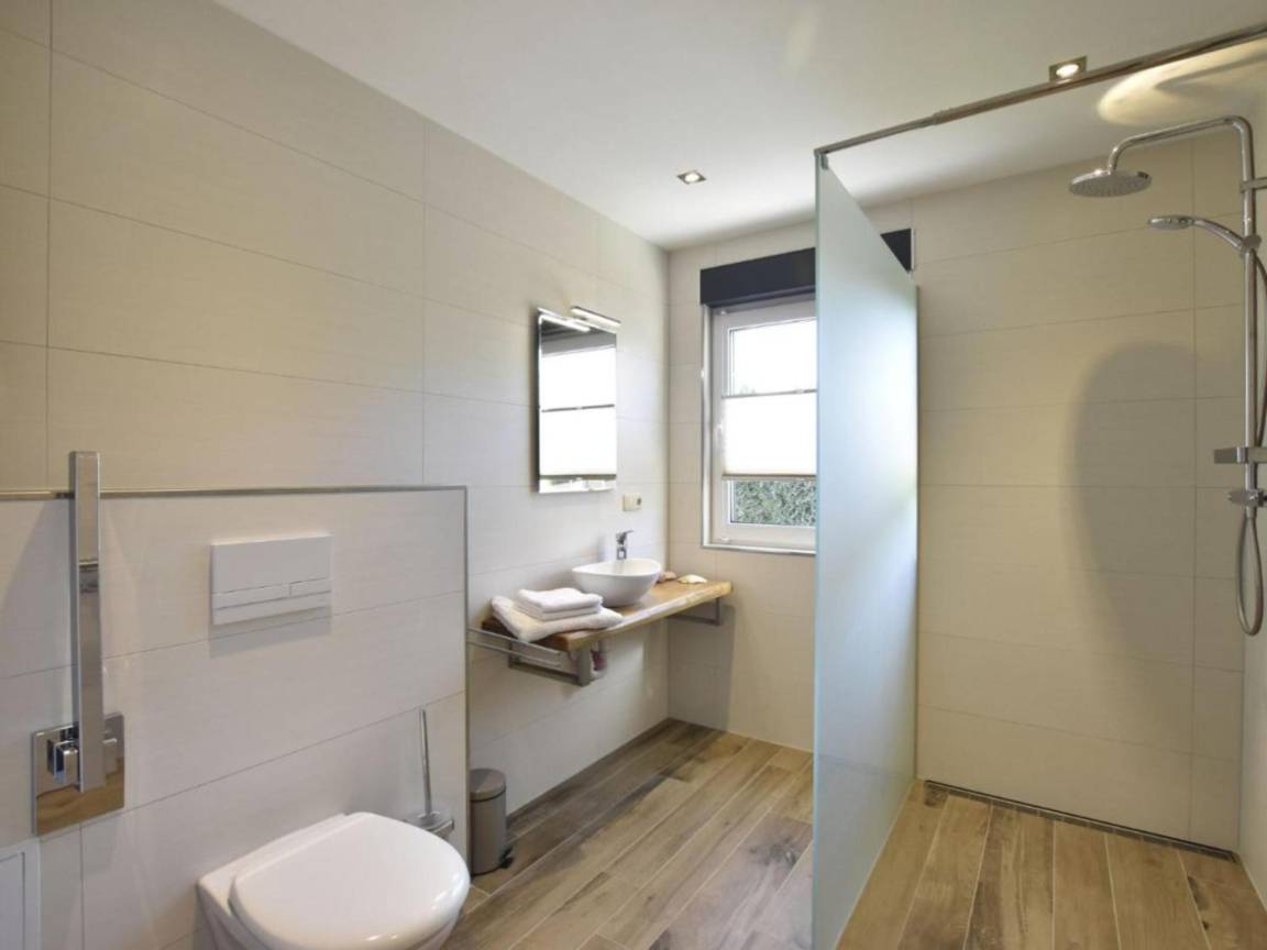 Layout : Parterre: Eingang(Gemeinschaftliche Nutzung mit anderen Gästen), offene Küche mit Wasserkocher, Toaster, Kochherd, Dunstabzugshaube, Kaffeemaschine(Filter), Backofen, Mikrowelle, Geschirrspüler, Kühl-/Gefrierkombination , Wohn/Esszimmer mit Schlafcouch 1 Pers., TV, Kamin, Gesellschaftsspiele , Schlafzimmer mit Doppelbett king size(180 x 200 cm) , Badezimmer mit Waschbecken, Dusche(angepasst für Behinderte, ebenerdige Dusche), Toilette(angepasst für Behinderte) , Waschraum mit Waschmaschine(gegen Gebühr)