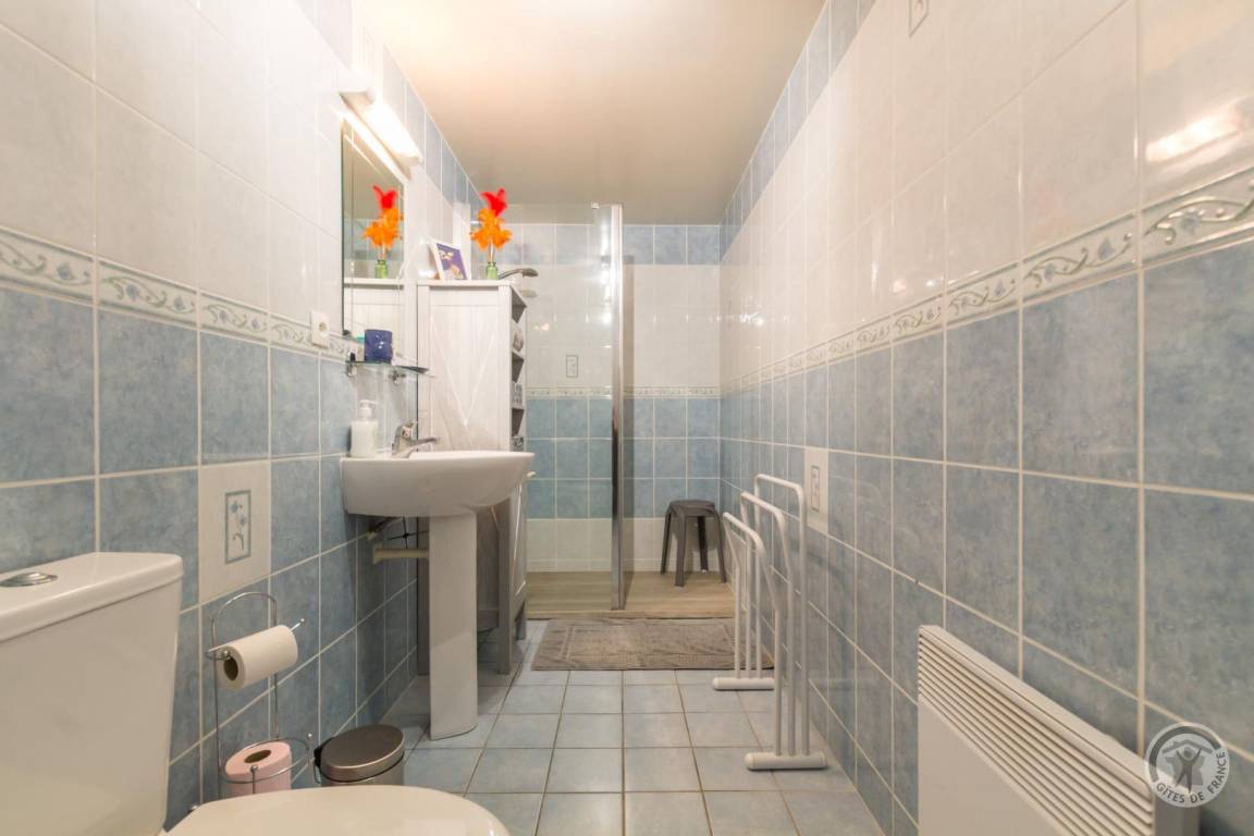 „La location était très bien, une suggestion pour la salle de bain une étagère à gauche du lavabo est à rajoutée (comme celle de droite) car la tablette du lavabo est étroite on ne peut rien poser dessus, à deux ca fait juste et une tablette aussi pour poser le bain douche et shampoing dans la douche serait une bonne idée, insonorisation à améliorer (bruit et odeurs de cuisine gite à coté) à part ces détails tout a été très bien, la propriétaire était accueillante et le gite très agréable.“