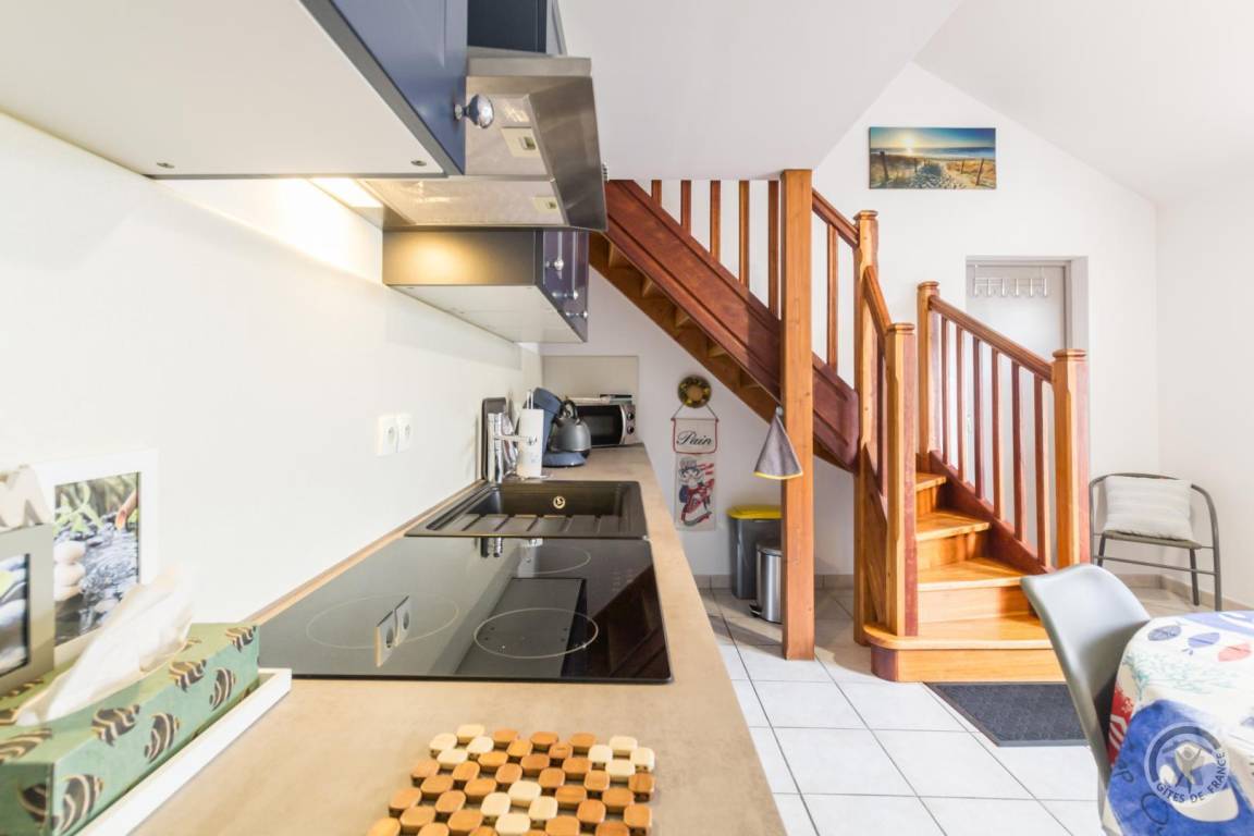 Maisonette-Wohnung mit angrenzender Wohneinheit. Wohnzimmer (TV, WLAN) mit Kochnische (Backofen, Induktionskochfeld, Mikrowelle, Kühlschrank). Duschbad mit WC (Waschmaschine). Im Obergeschoss befindet sich ein Schlafzimmer auf der Galerie (Doppelbett 140 x 190 cm). Babyausstattung ist auf Anfrage erhältlich. Bettwäsche und bezogene Betten werden gestellt. Handtücher sind vorhanden. Reinigungsservice gegen Aufpreis. Elektrische Heizung inklusive. Alle Nebenkosten inklusive. Private Terrasse. Gartenmöbel. Grill. Sonnenliegen. Gemeinsamer, umzäunter Garten. Parkplatz zur Mitbenutzung mit den Eigentümern.