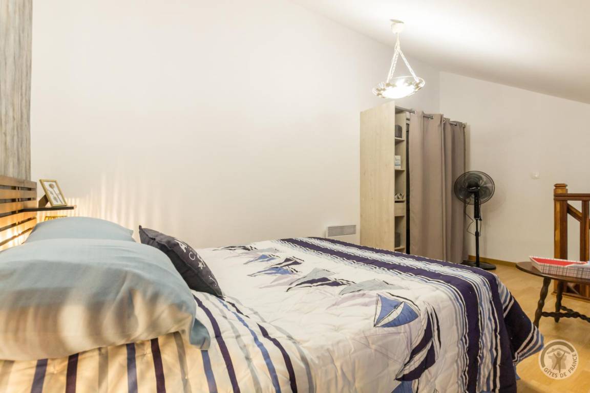 „Beau gîte neuf, Bien équipé, literie confortable et voiture garée en toute sécurité. Nous avons bénéficié d une bonne wifi. On se sent bien dans ce logement très propre, calme. Nous dormions le velux ouvert car la chaleur monte en mezzanine mais un ventilateur est dans la chambre si nécessaire. Propriétaires très discrets et je tiens à remercier particulièrement Madame qui m a gentiment rendu service.“