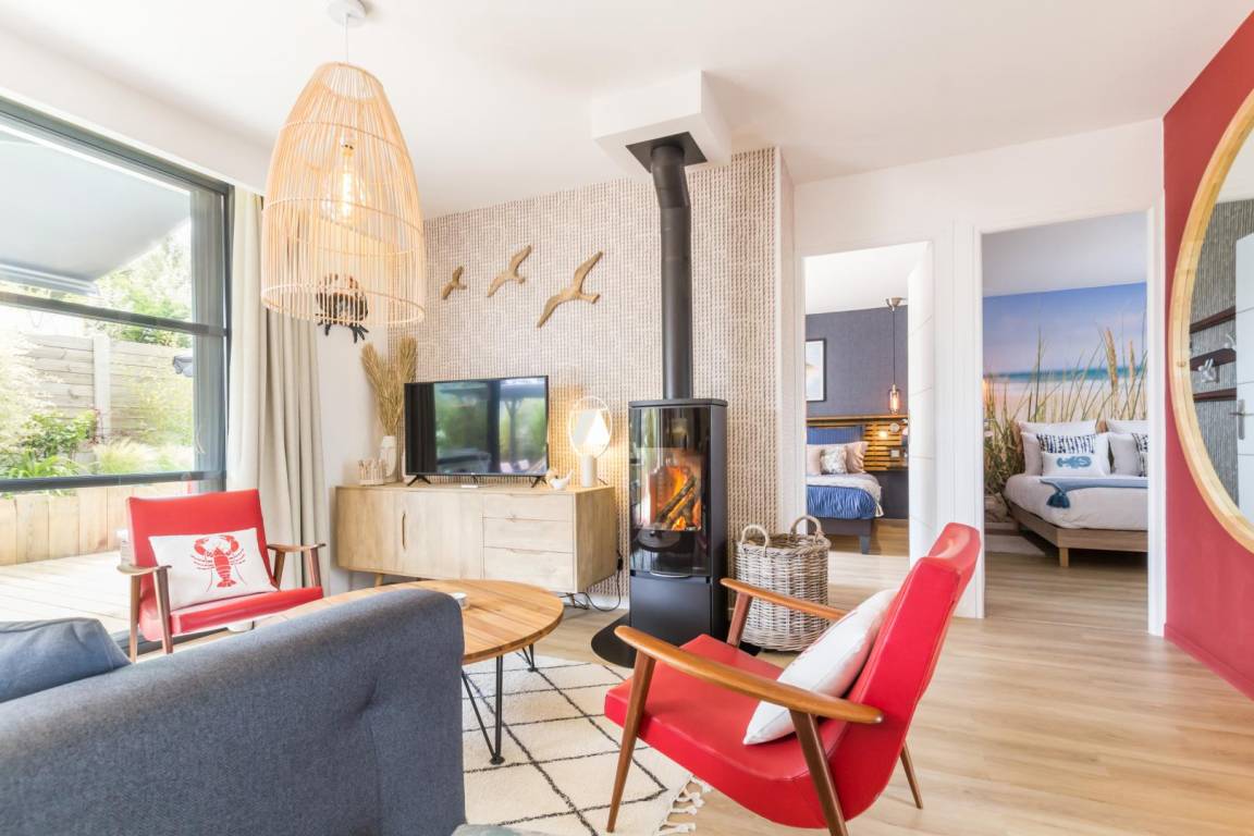 Freistehendes Haus auf einer Ebene (3 Stufen am Eingang). Eingang. Wohnzimmer mit Kaminofen (Holz vorhanden, TV, Internet) und Küchenzeile (Backofen, Geschirrspüler, Gefrierschrank, Mikrowelle). Schlafzimmer 1 (1 Queensize-Bett 160x200 cm) mit eigenem Duschbad (begehbare Dusche). Schlafzimmer 2 (1 Queensize-Bett 160x200 cm) mit eigenem Duschbad (begehbare Dusche) und direktem Zugang zur Terrasse. WC. Hauswirtschaftsraum (Waschmaschine, Wäschetrockner). Babyausstattung auf Anfrage. Bettwäsche und Handtücher werden gestellt. Die Betten sind bei Ankunft bezogen. Reinigungsservice inklusive. Elektrische Heizung inklusive. Alle Nebenkosten inklusive. Private, umzäunte Terrasse. Pergola. Gartenmöbel. Sonnenliegen. Feuerstelle. Unterstand. Privater, nicht umzäunter Garten. Privater Parkplatz. Zur Information: Die Eigentümer bieten außerdem ein zweites Ferienhaus an: „Le 3" (G130) für 2 Personen, direkt neben diesem Haus gelegen und mit denselben 4-Sterne-Annehmlichkeiten.