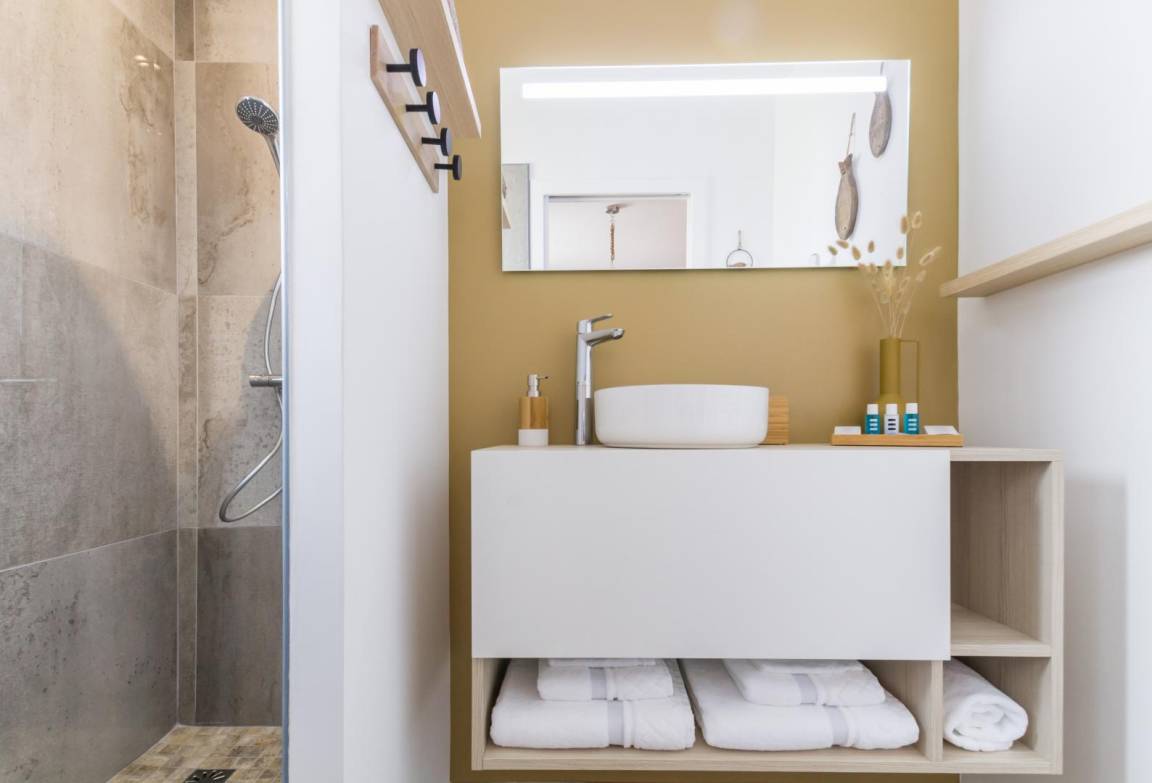 „Petit bijou de confort et d'élégance. Un grand souci de la décoration. Les matériaux et les objets (douche, lavabos, etc.) sont de belle qualité. Deux douches séparées. Environnement très calme. Une terrasse bien abritée et aménagée avec soin. Une belle surprise de rencontrer de tels gîtes.“