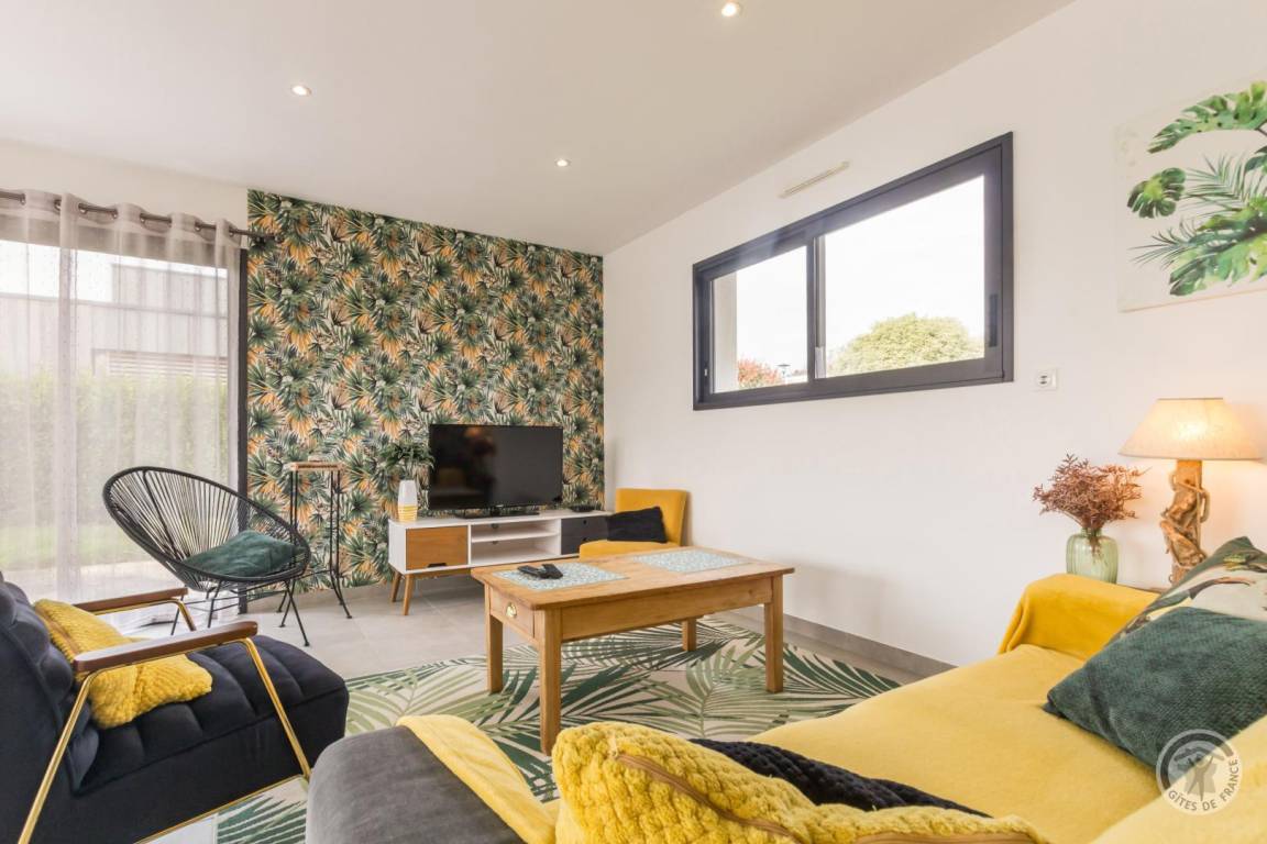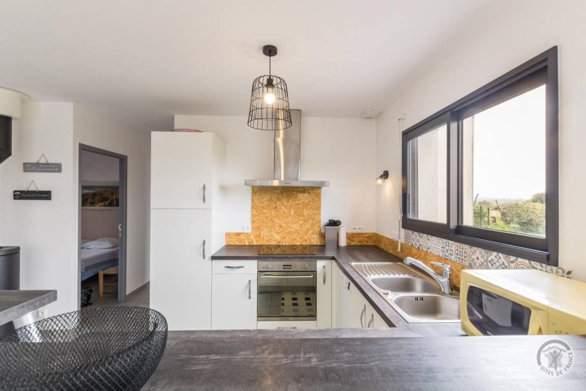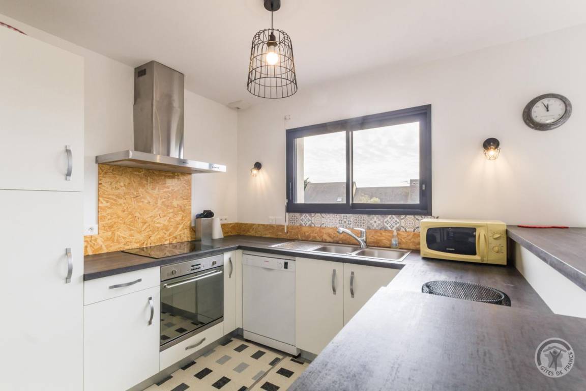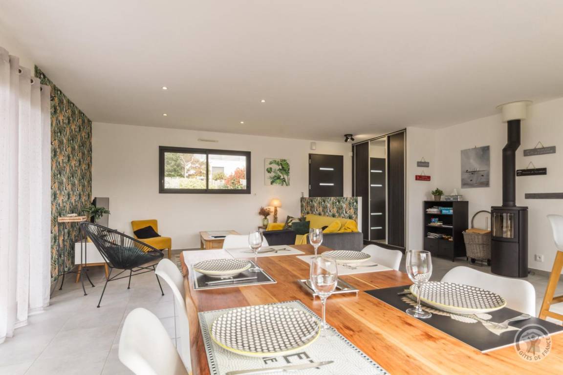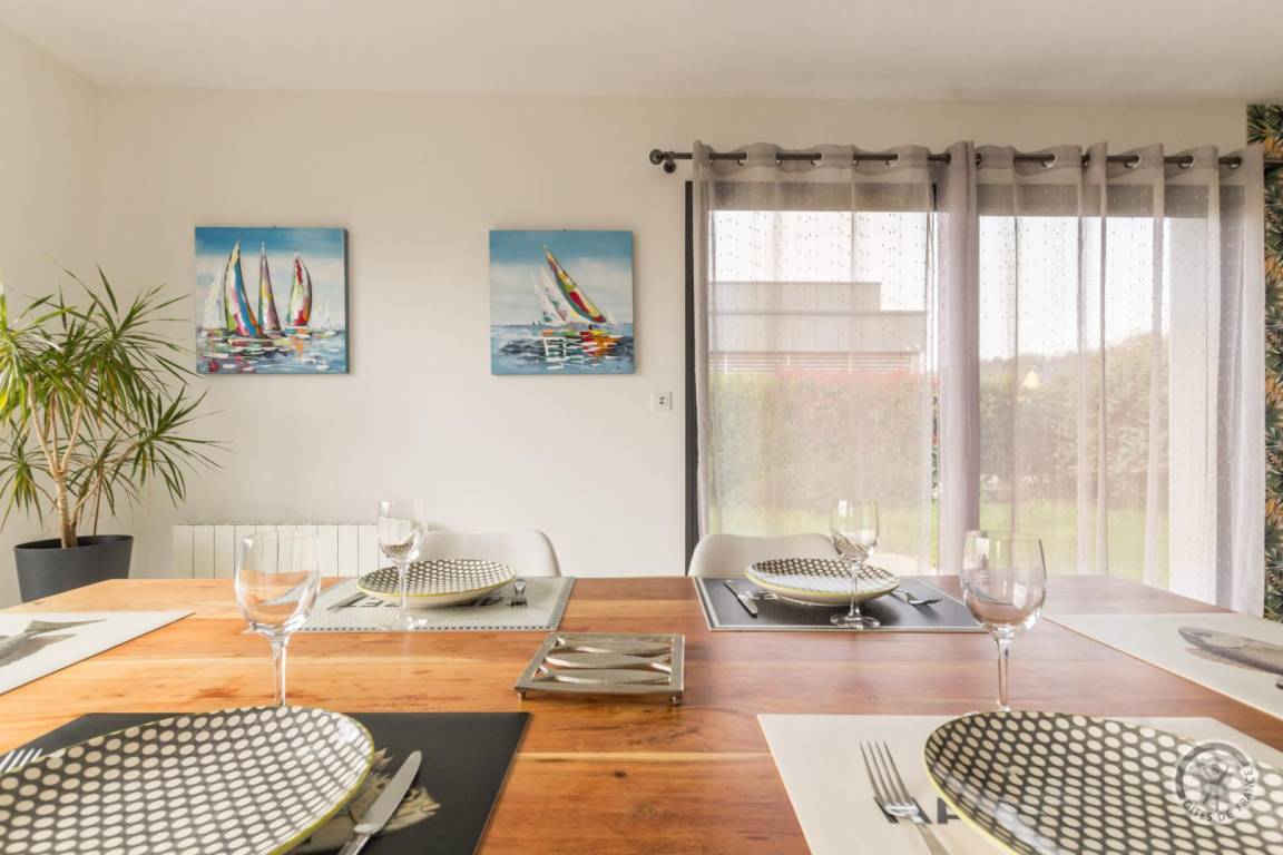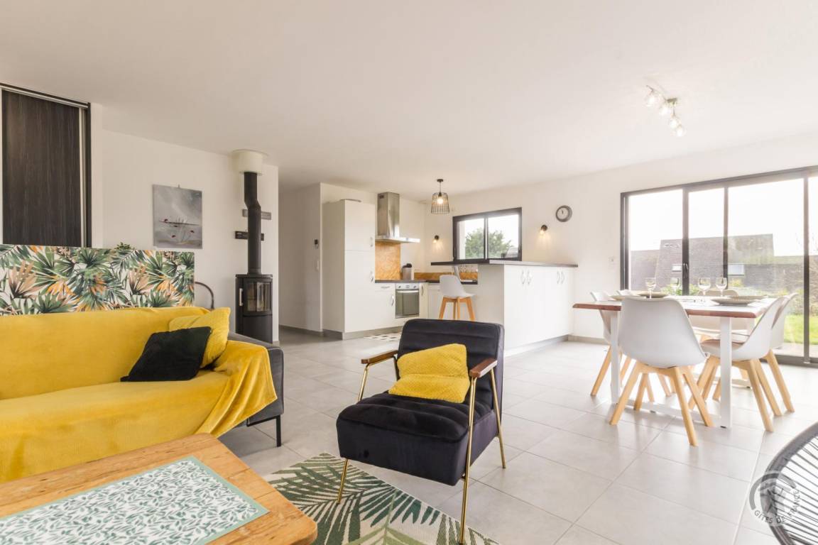 Freistehendes, ebenerdiges Haus. Wohnzimmer mit Kaminofen (TV, Glasfaser-Internet). Offene Küche (Induktionskochfeld, Backofen, Geschirrspüler, Kühlschrank mit Gefrierfach, Mikrowelle, Kapselkaffeemaschine). Schlafzimmer 1 (Doppelbett 140x190 cm). Schlafzimmer 2 (Queensize-Bett 160x200 cm) mit Ankleidezimmer und Zugang zur Terrasse. Schlafzimmer 3 (zwei Einzelbetten 90x190 cm). Duschbad. Separates WC. Waschküche (Waschmaschine und Spüle). Babyausstattung auf Anfrage. Elektrische Heizung inklusive. Bettwäsche gegen Gebühr. Handtücher werden gestellt. Reinigungsservice inklusive. Privater, nicht umzäunter Garten. Terrasse. Gartenmöbel. Grill. Sonnenliegen. Gartenhaus. Parkplatz.