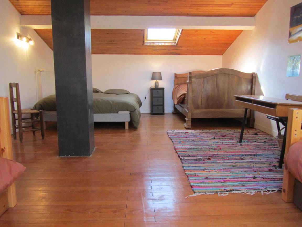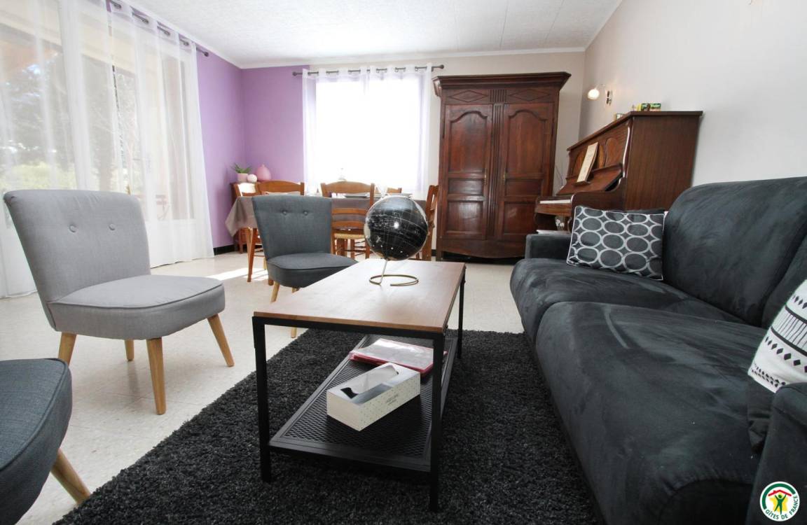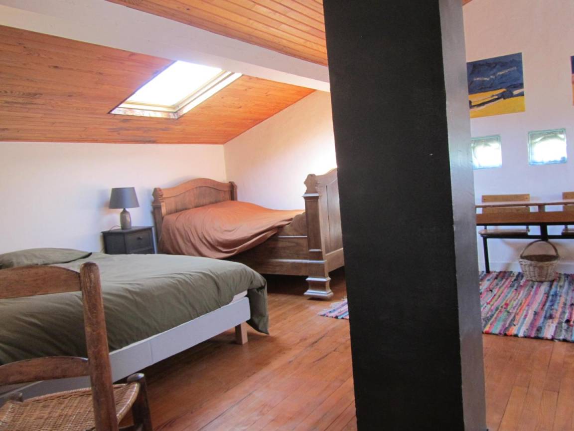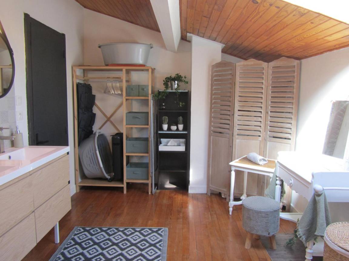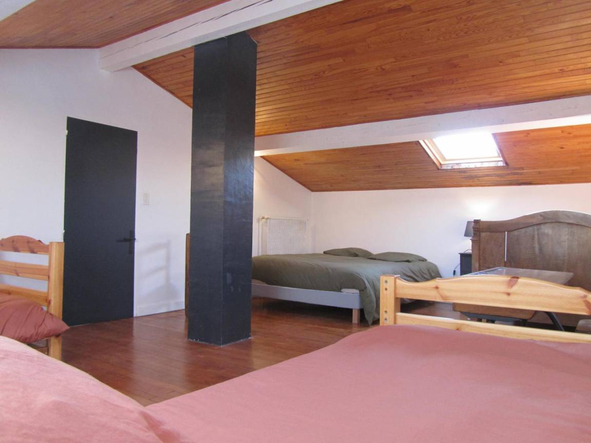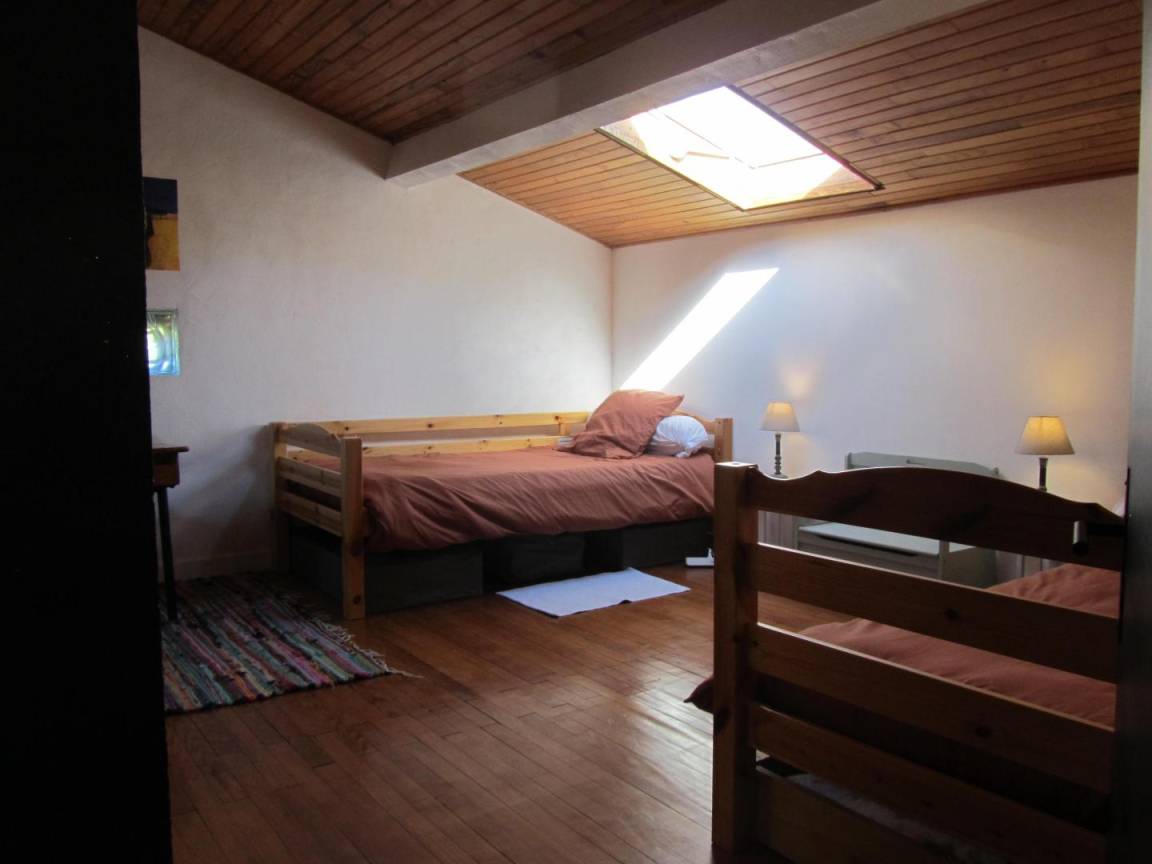 Das Gîte des Grandes Vignes ist die erweiterte Version des „Gîte des Vignes" Nr. G27002. Das Haus grenzt an den Empfangsbereich des Weinkellers und profitiert von einem separaten Eingang sowie einem privaten Außenbereich. Im Erdgeschoss: Der Eingang öffnet sich zum Flur, der zur voll ausgestatteten Küche, zum Wohnzimmer mit Sitzecke, Kamin, Klavier, Veranda, zu den 3 Schlafzimmern mit Abstellraum und Rollläden (140x190) (140x190 als elektrisches Bett) (2x80x190), zum Duschraum mit kombinierter Waschmaschine/Trockner, zur separaten Toilette führt. Obergeschoss: Wohnzimmer im Dachgeschoss, Schlafzimmer im Dachgeschoss von 28 m² (160 x 200, 110 x 190, 2 x 90 x 190 und Klappsessel für 1 Person), Duschraum/WC. Außenbereich: 20 m² überdachte Terrasse mit winddichtem Erker, 3 Hängematten, privatem Parkplatz und Blick auf die Weinberge. Für die Kleinsten: Reisebett, Hochstuhl, 2 verstellbare Stühle, 2 Badewannen, Wickeltisch und -auflage, Liegestuhl, Toilettensitz, Spiele.