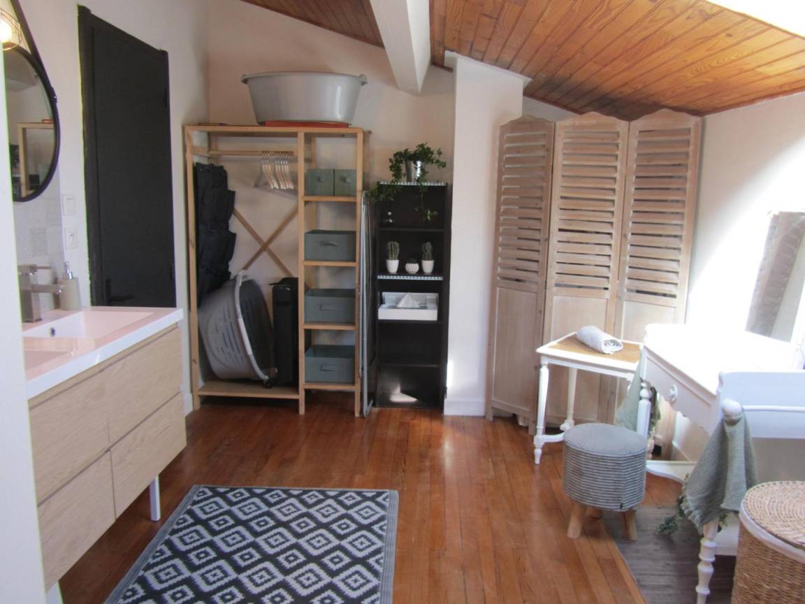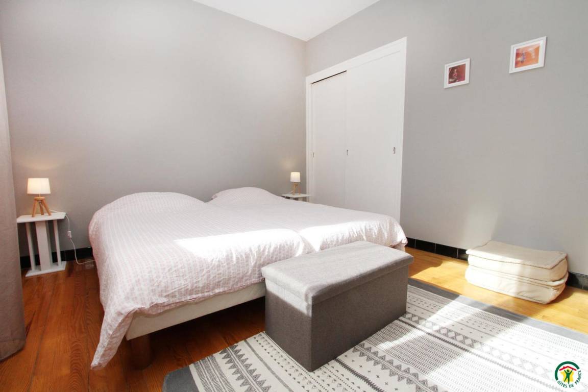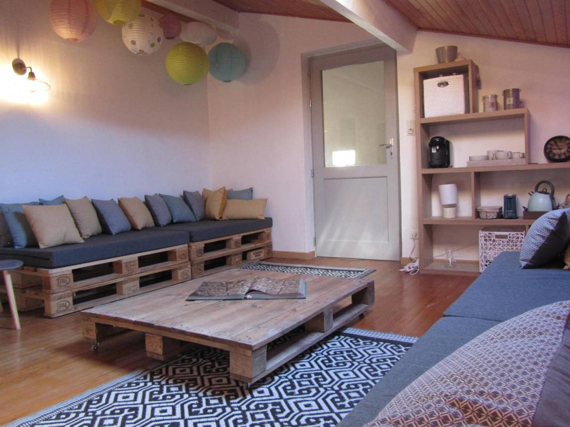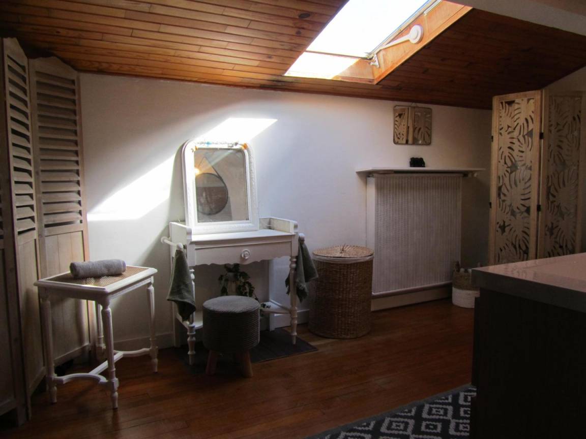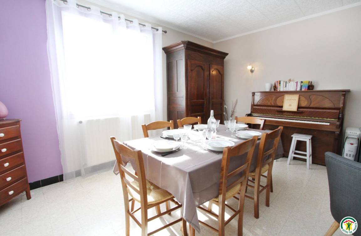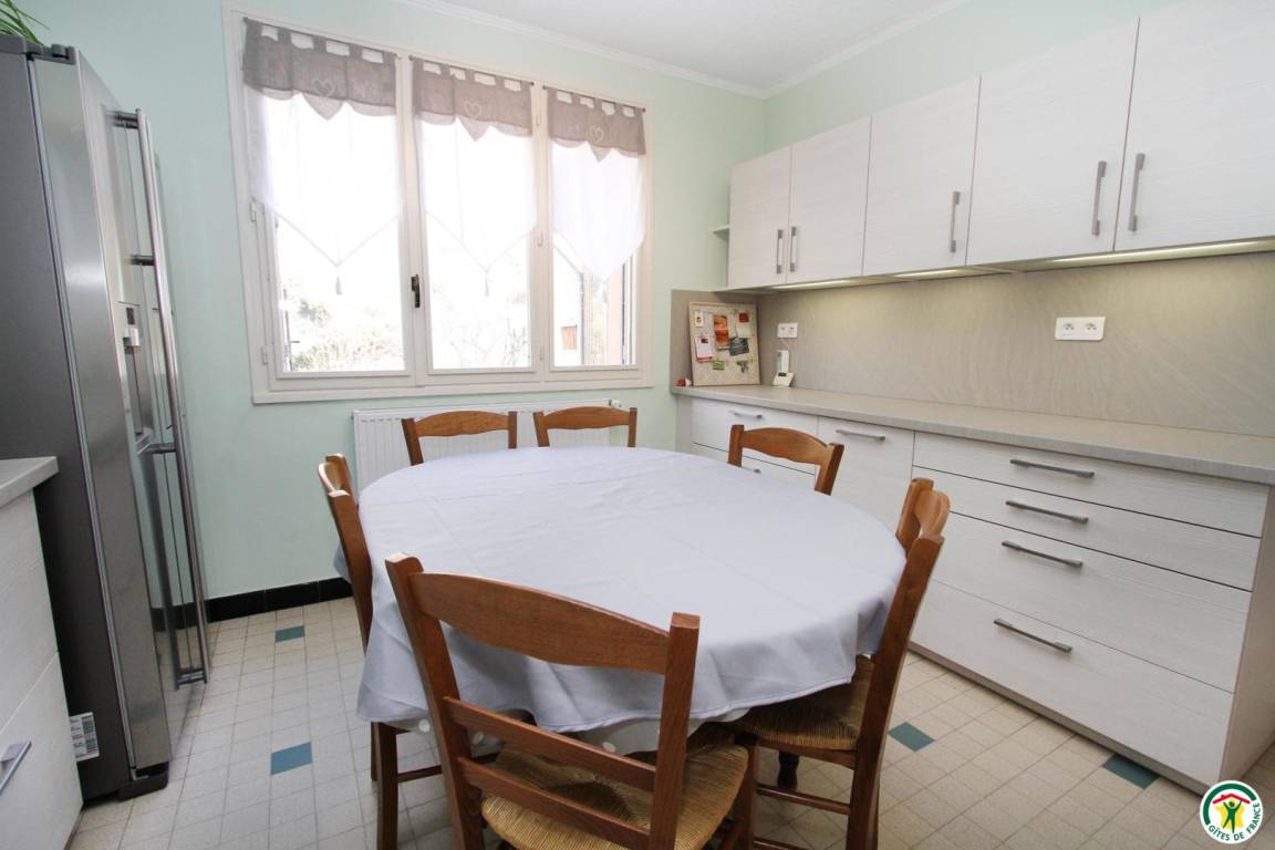 Das Gîte des Grandes Vignes ist die erweiterte Version des „Gîte des Vignes" Nr. G27002. Das Haus grenzt an den Empfangsbereich des Weinkellers und profitiert von einem separaten Eingang sowie einem privaten Außenbereich. Im Erdgeschoss: Der Eingang öffnet sich zum Flur, der zur voll ausgestatteten Küche, zum Wohnzimmer mit Sitzecke, Kamin, Klavier, Veranda, zu den 3 Schlafzimmern mit Abstellraum und Rollläden (140x190) (140x190 als elektrisches Bett) (2x80x190), zum Duschraum mit kombinierter Waschmaschine/Trockner, zur separaten Toilette führt. Obergeschoss: Wohnzimmer im Dachgeschoss, Schlafzimmer im Dachgeschoss von 28 m² (160 x 200, 110 x 190, 2 x 90 x 190 und Klappsessel für 1 Person), Duschraum/WC. Außenbereich: 20 m² überdachte Terrasse mit winddichtem Erker, 3 Hängematten, privatem Parkplatz und Blick auf die Weinberge. Für die Kleinsten: Reisebett, Hochstuhl, 2 verstellbare Stühle, 2 Badewannen, Wickeltisch und -auflage, Liegestuhl, Toilettensitz, Spiele.