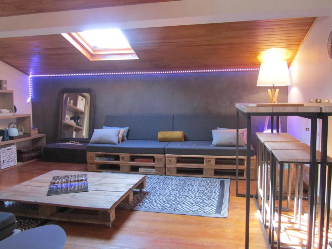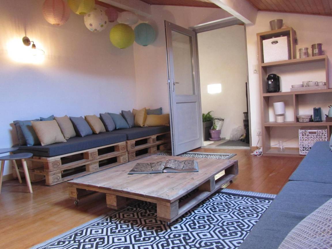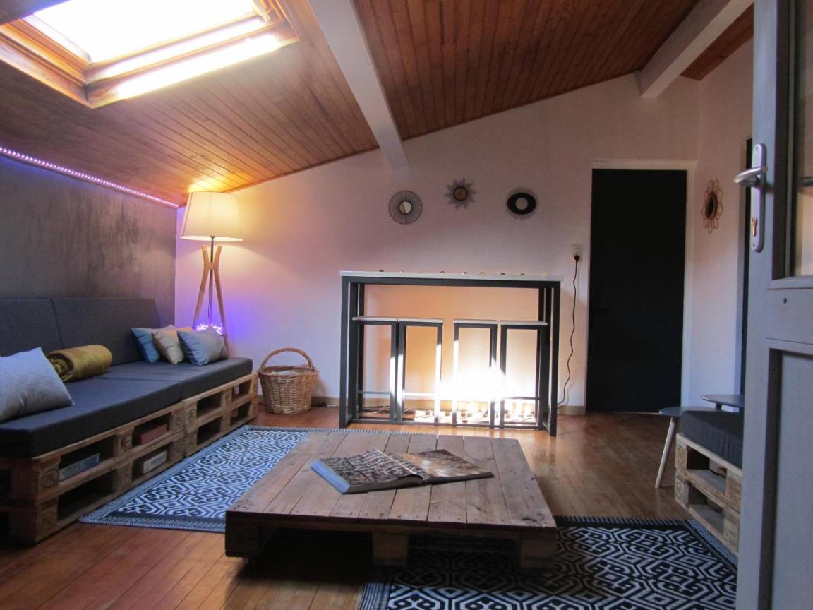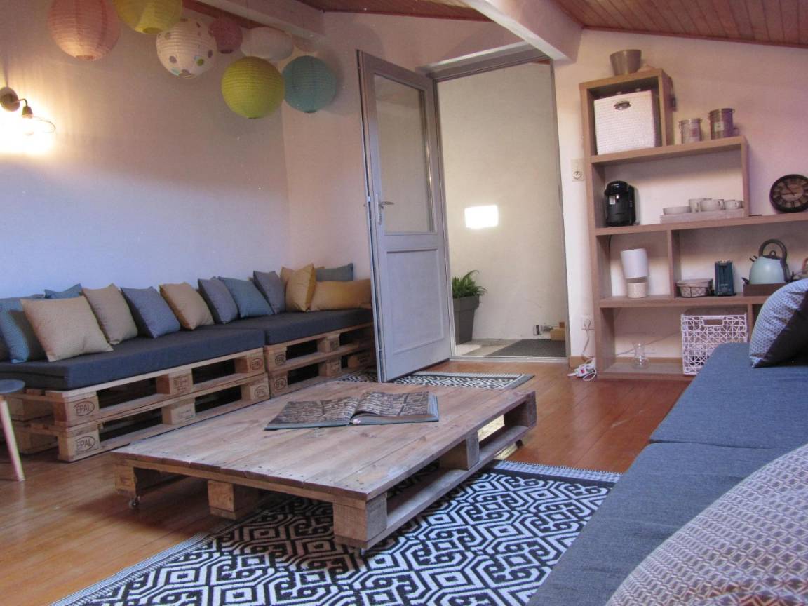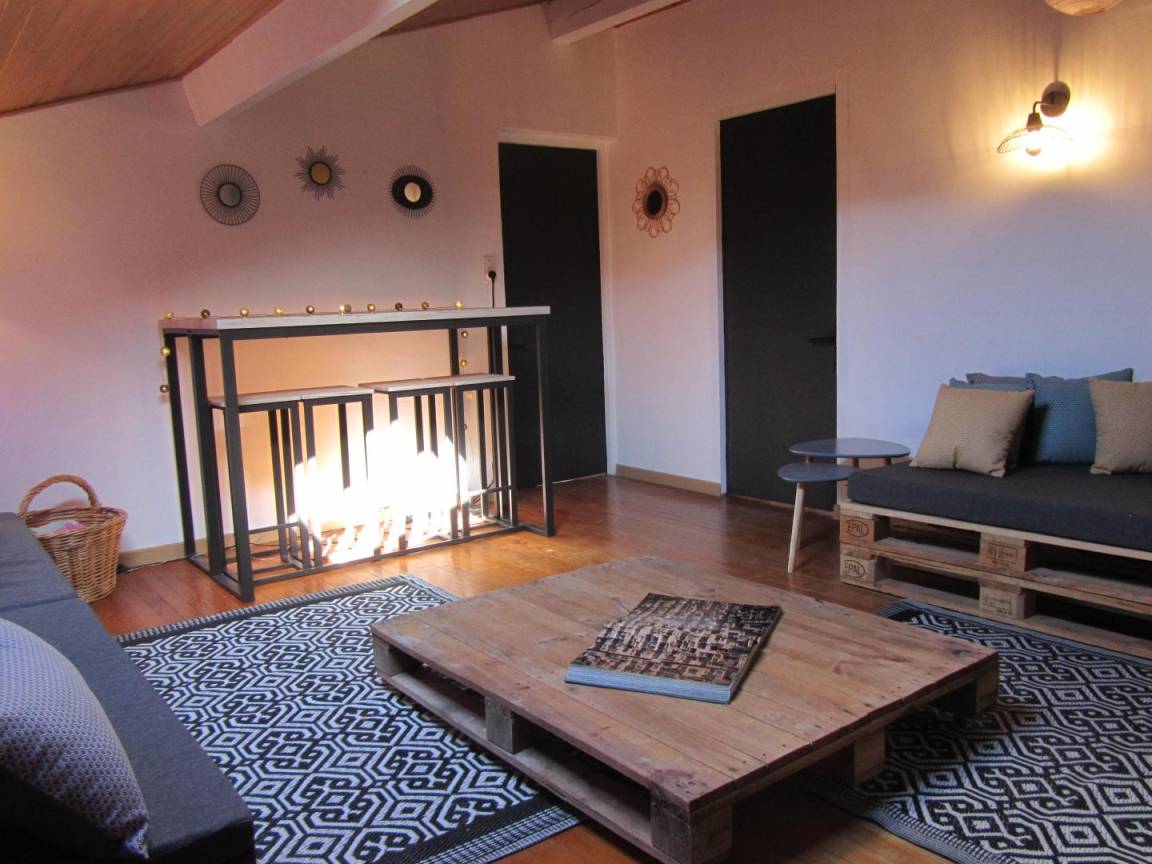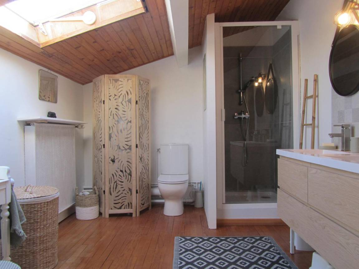 Das Gîte des Grandes Vignes ist die erweiterte Version des „Gîte des Vignes" Nr. G27002. Das Haus grenzt an den Empfangsbereich des Weinkellers und profitiert von einem separaten Eingang sowie einem privaten Außenbereich. Im Erdgeschoss: Der Eingang öffnet sich zum Flur, der zur voll ausgestatteten Küche, zum Wohnzimmer mit Sitzecke, Kamin, Klavier, Veranda, zu den 3 Schlafzimmern mit Abstellraum und Rollläden (140x190) (140x190 als elektrisches Bett) (2x80x190), zum Duschraum mit kombinierter Waschmaschine/Trockner, zur separaten Toilette führt. Obergeschoss: Wohnzimmer im Dachgeschoss, Schlafzimmer im Dachgeschoss von 28 m² (160 x 200, 110 x 190, 2 x 90 x 190 und Klappsessel für 1 Person), Duschraum/WC. Außenbereich: 20 m² überdachte Terrasse mit winddichtem Erker, 3 Hängematten, privatem Parkplatz und Blick auf die Weinberge. Für die Kleinsten: Reisebett, Hochstuhl, 2 verstellbare Stühle, 2 Badewannen, Wickeltisch und -auflage, Liegestuhl, Toilettensitz, Spiele.