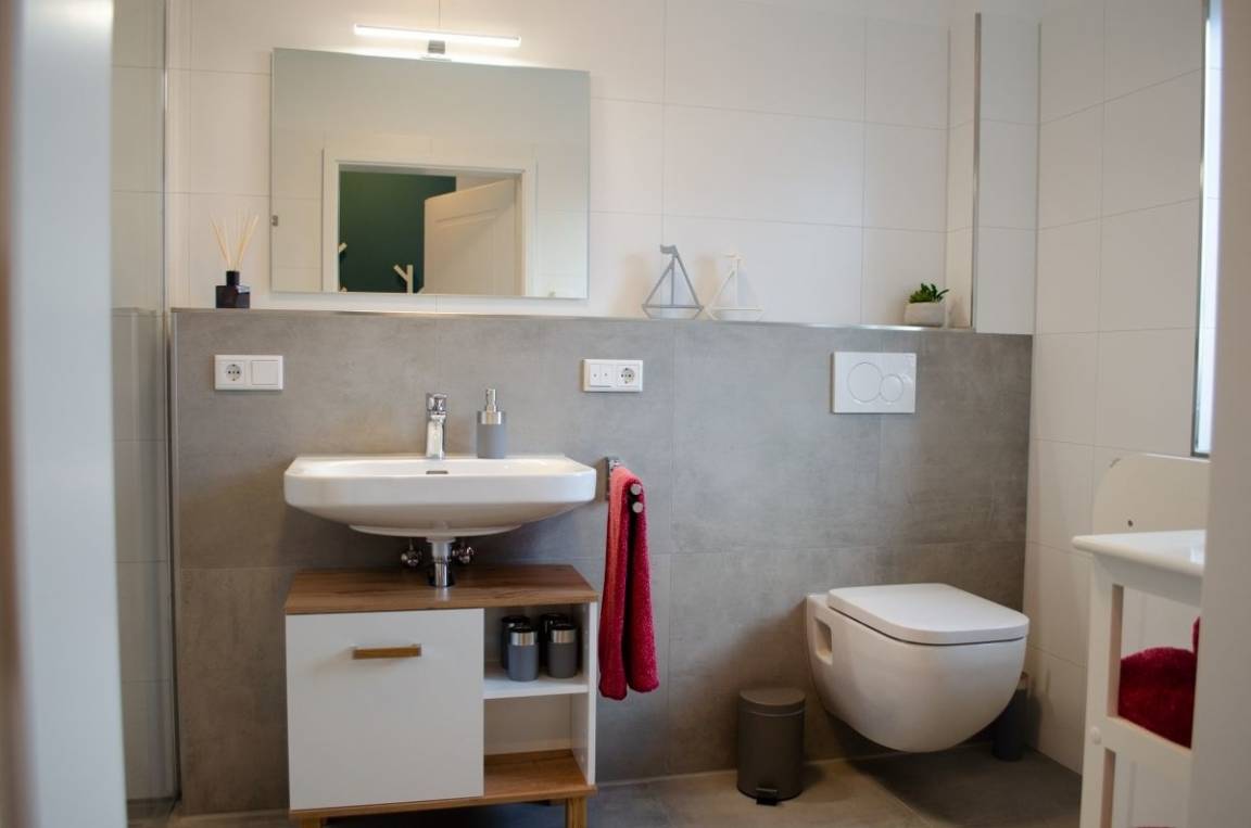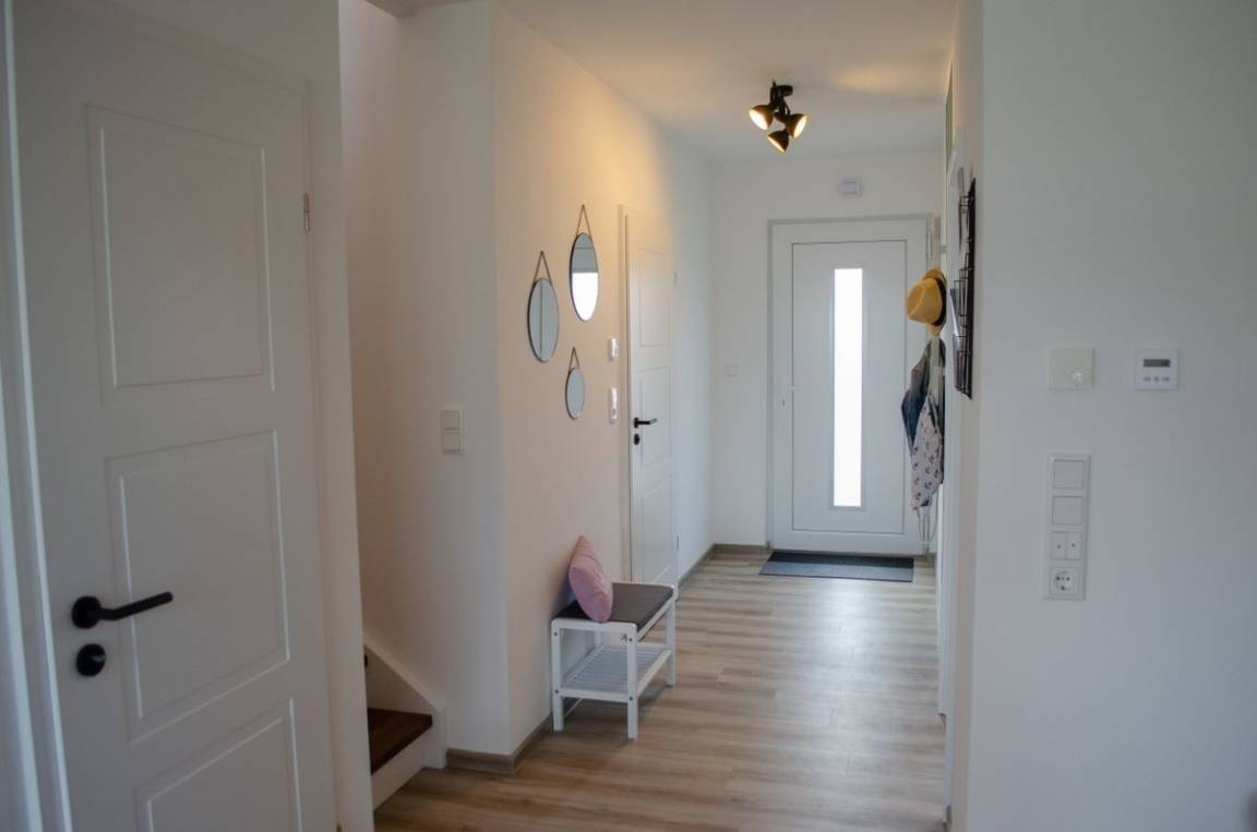 Unsere Ferienwohnung ist hochwertig und modern eingerichtet und bietet alle Annehmlichkeiten, die einen erholsamen Urlaub versprechen. So sind die dreifachverglasten Kunststofffenster mit elektrischen Außenjalousien versehen. Weitere Annehmlichkeiten sind Fußbodenheizung, Lüftungsanlage mit Wärmerückgewinnung, eine große Schiebetür im Wohnzimmer sowie weiße Innentüren. Weiterhin haben Sie in der gesamten Wohnung WLAN (Glasfaser).