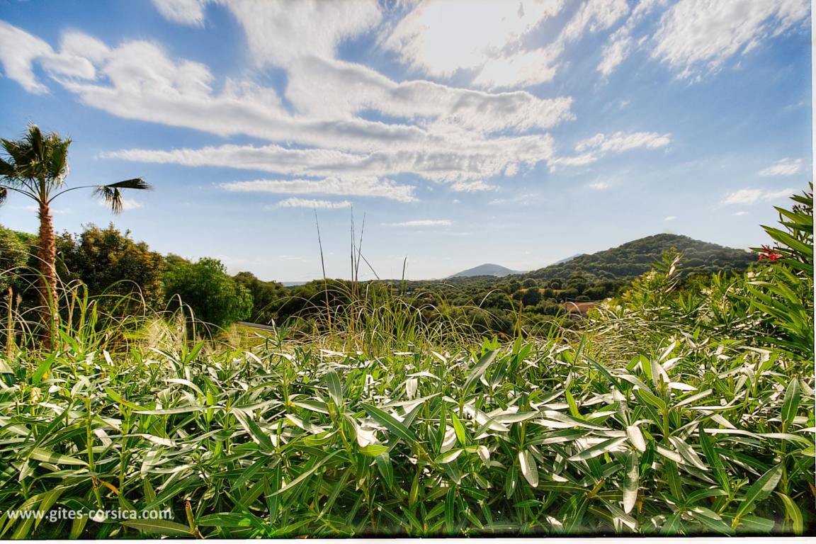 - Freier Blick auf die Landschaft mit dem Meer im Hintergrund.