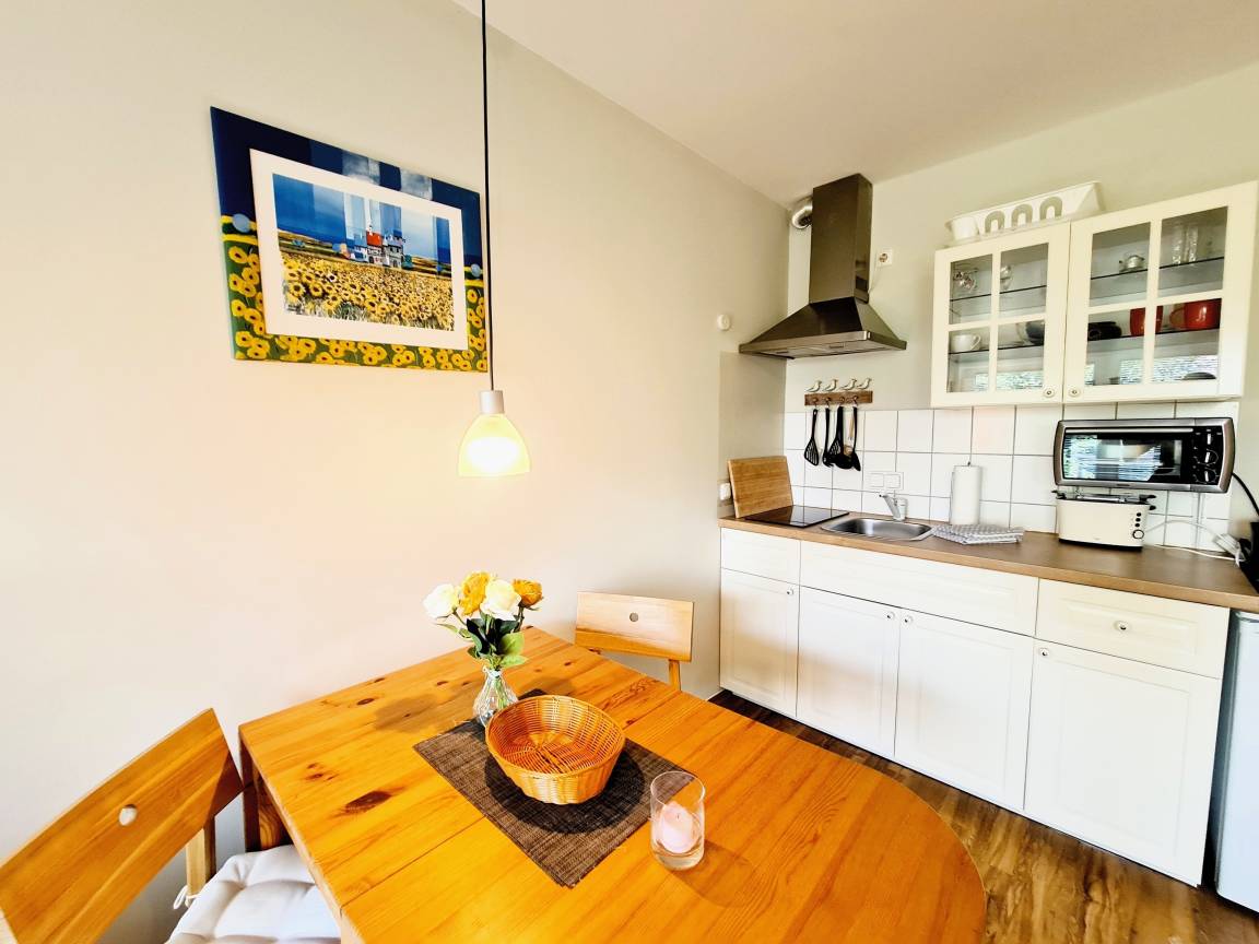 Die kleine aber feine Ferienwohnung bietet Platz für 2 Personen. Ein kostenloser Stellplatz für Ihr Auto so wie ein kleiner Balkon gehören mit dazu.