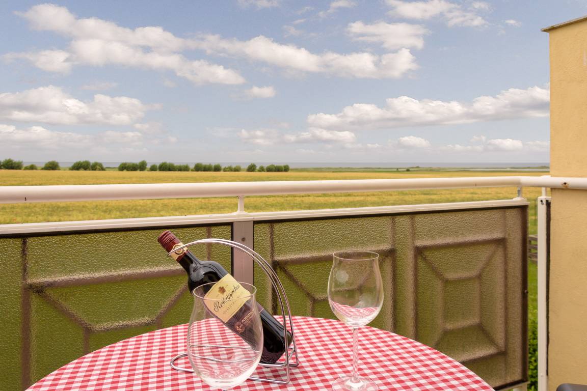 Die Ferienwohnungen befinden sich in einem neuen, separaten Gebäude auf der großzügigen Anlage der Pension "Zum Riedensee". Alle Wohnungen haben von der eigenen Terrasse aus einen direkten Blick über die blühenden Felder hinweg auf die Ostsee und vorbeifahrende Schiffe.