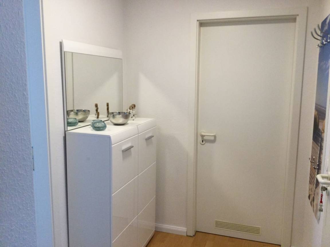 Die circa 51 qm große Wohnung liegt im Dachgeschoss des Apartmenthauses. Im Flur gibt es eine kleine Garderobe.