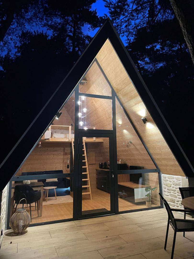 Canopéa lädt Sie zu einem erholsamen Aufenthalt inmitten der Natur ein – in einer Umgebung, die Ruhe, modernen Komfort und Annehmlichkeiten vereint. Das helle, 25 m² große Chalet im A-Rahmen-Stil ist ideal für Paare, die eine Auszeit vom Alltag suchen.