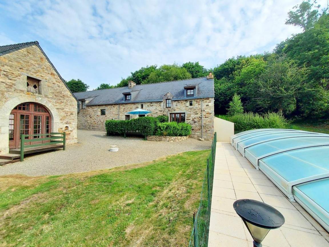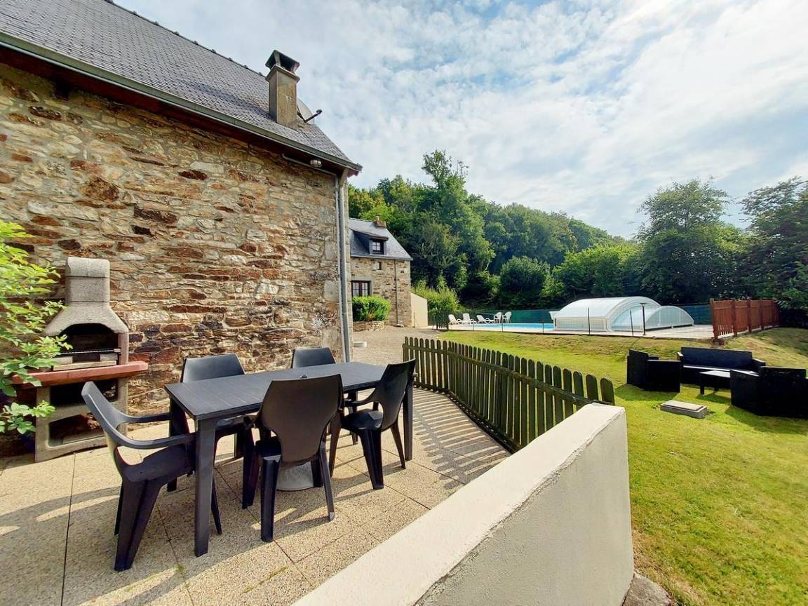 Zwischen steilen Klippen und Hügeln ist das Blavet-Tal eine wahre grüne Oase mit einem bemerkenswerten ökologischen Reichtum. Der Treidelpfad, der an den Fluss Blavet grenzt, ist zu Fuß, mit dem Fahrrad oder zu Pferd erreichbar. Zwei nautische Stützpunkte in Saint Nicolas des Eaux und Pont-Augan (in der Stadt) führen Sie in die Freuden des Wassers ein (Kanu, Tretboot usw.). Nutzen Sie für Familienmomente in Pluméliau-Bieuzy den Park Balade du Père Nicolas mit hundert Outdoor-Aktivitäten, lassen Sie sich von einer Partie Paintball verführen oder begeben Sie sich auf eine Go-Kart-Bahn! Zum Forellenangeln ist der Fluss Tarun in der Nähe der Hütte. Wenn Sie die Einrichtungen des Landguts Kerabellec nutzen möchten, werden Sie den großen 10 x 5 m großen Swimmingpool (Tiefe 1,50 m) unter einer Schiebeabdeckung sowie den Kinderspielplatz zu schätzen wissen. Entspannen Sie auf den Liegestühlen am Pool oder auf den Gartenmöbeln im Garten.