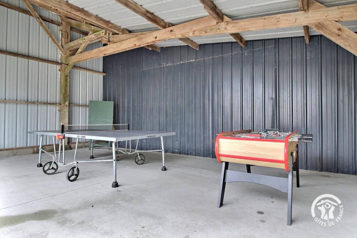 Überdachter Bereich mit Tischtennisplatte und Tischfußball