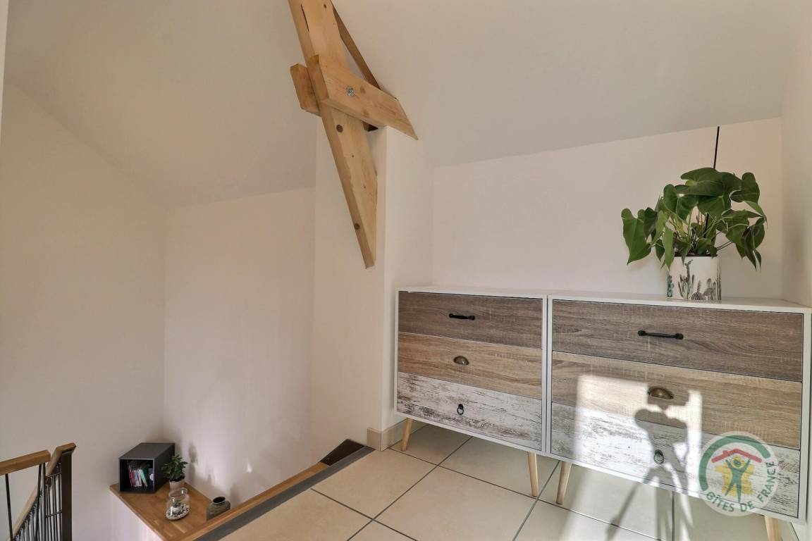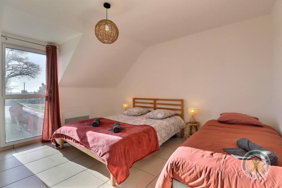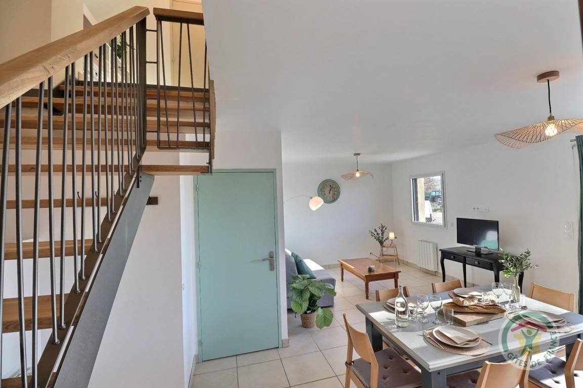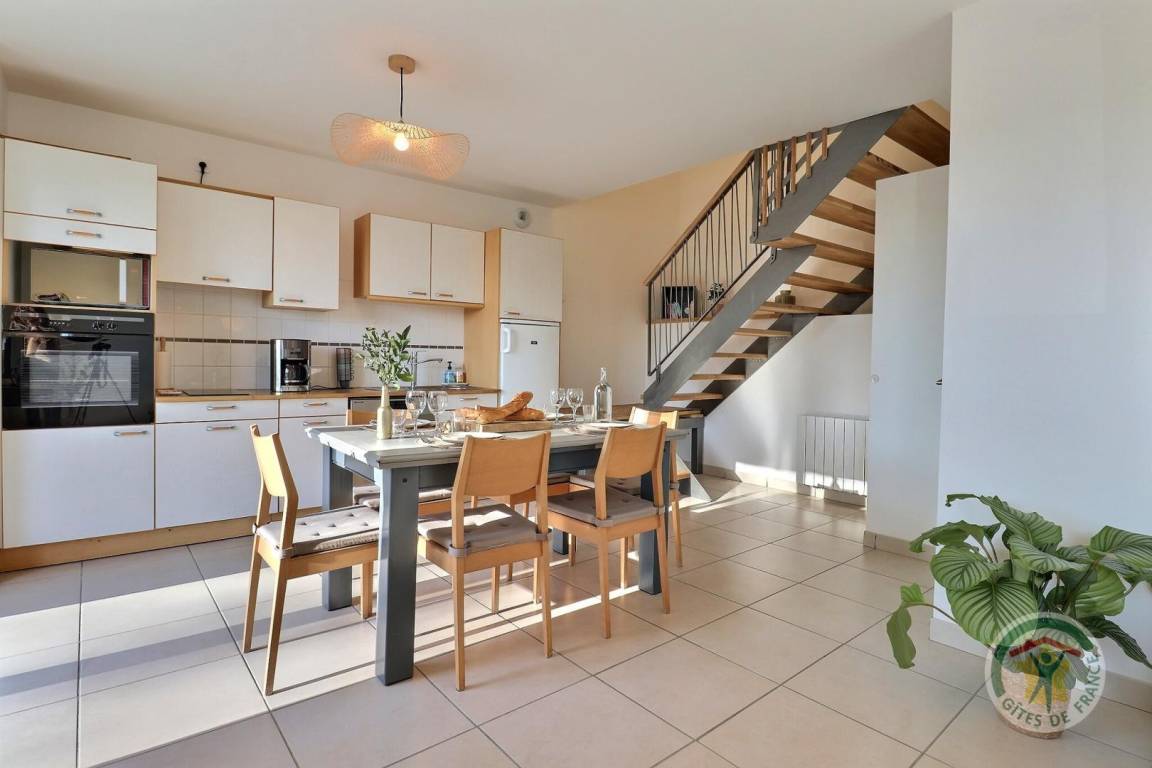 Im Erdgeschoss: ein Wohnzimmer mit Küche und Wohnzimmer mit einem 140X190 Schlafsofa zum Schlafen und ein Badezimmer mit WC. Obergeschoss: ein Schlafzimmer mit einem 160x200-Bett und einem 90x200-Bett, ein Schlafzimmer mit zwei 90x200-Betten, die in ein Doppelbett umgewandelt werden können, und ein Badezimmer (Waschbecken und WC). Parkplatz auf dem Grundstück.