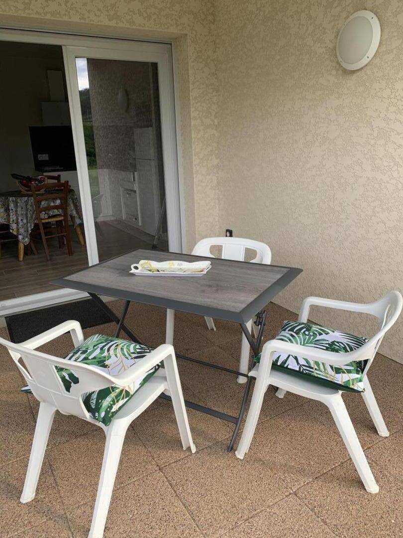 „Gite bien situé, proche commerces et curiosités. Gite fonctionnel pour 2 personnes. Terrasse couverte et superbe vue. Propriétaires charmants. Personnel office du tourisme au top.“