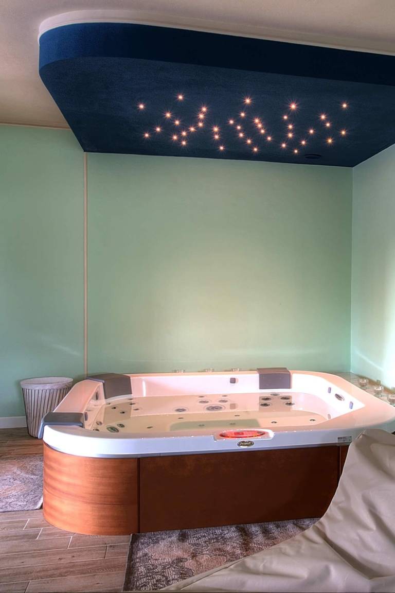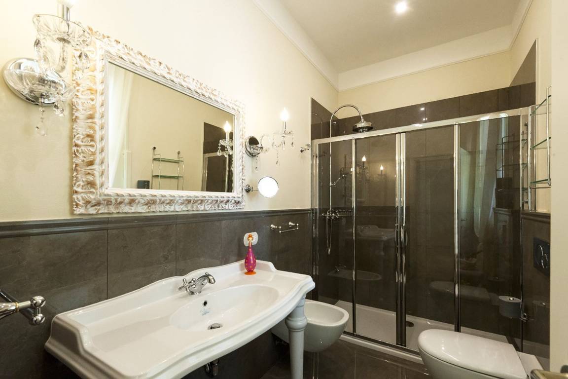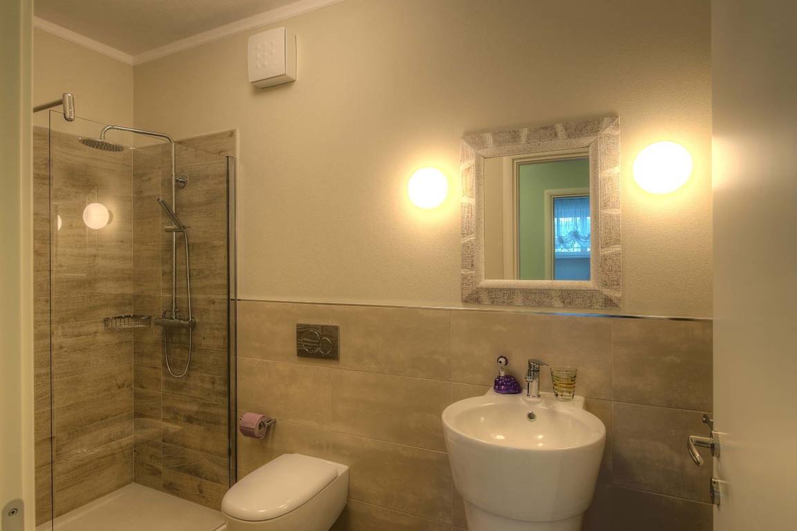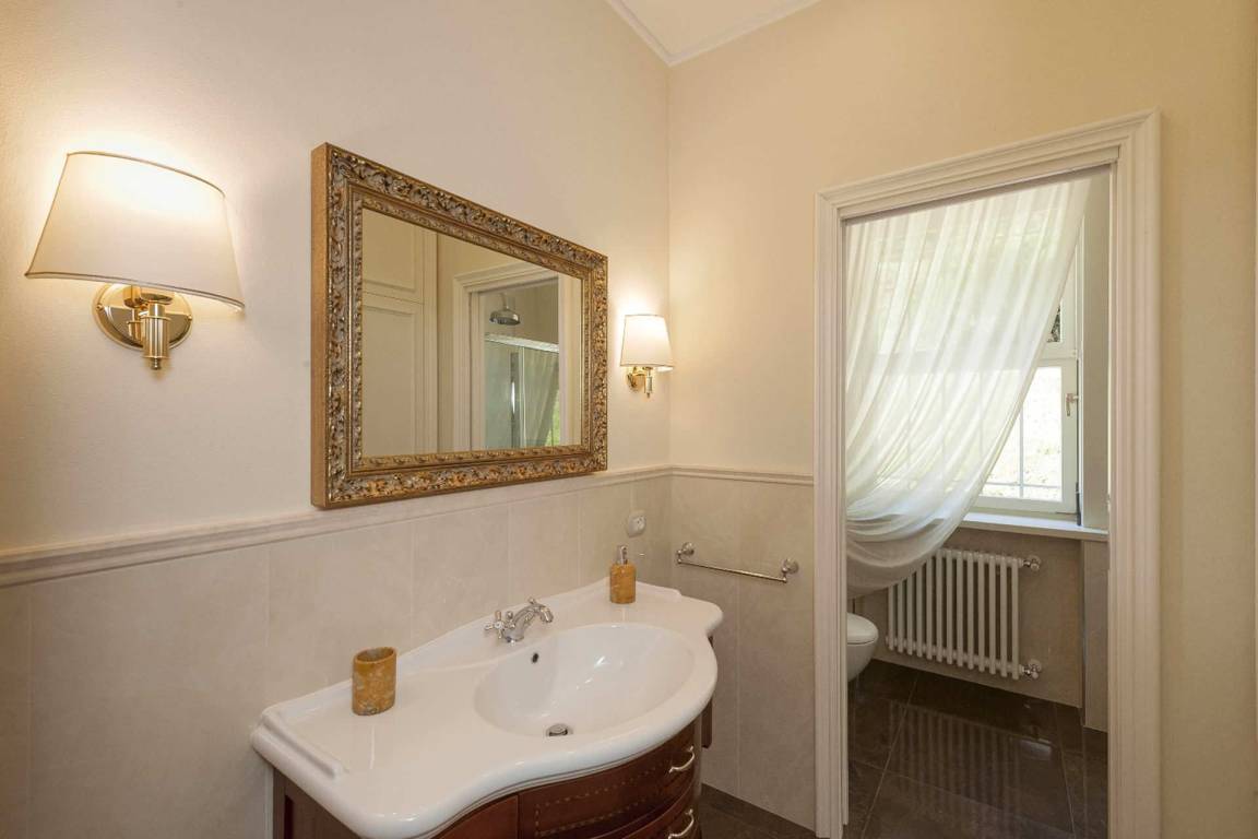 Das Untergeschoss beherbergt einen vollständig klimatisierten Wellness- und Entspannungsbereich, der über Glastüren direkt vom Garten oder vom Wohnbereich der Villa zugänglich ist. Dieser Bereich verfügt über eine Whirlpool-Badewanne für 5 Personen, ein gut ausgestattetes Fitnessstudio und eine Entspannungs- und Teeecke mit Betten; ein vollständiges Bad mit Dusche ergänzt den Wellnessbereich. Ein Multifunktionsraum mit Natursteinwänden ist mit einem Fernseher, einem Spielzimmer mit Kinderspielzeug, Tischtennis, Tischfußball, mehreren Sofas und Sesseln sowie einem beeindruckenden Refektoriumstisch ausgestattet und bietet einen schönen Seeblick. Ein separater Wäscheraum im Untergeschoss ist mit einer Waschmaschine, einem Trockner und einem Bügeleisen ausgestattet.