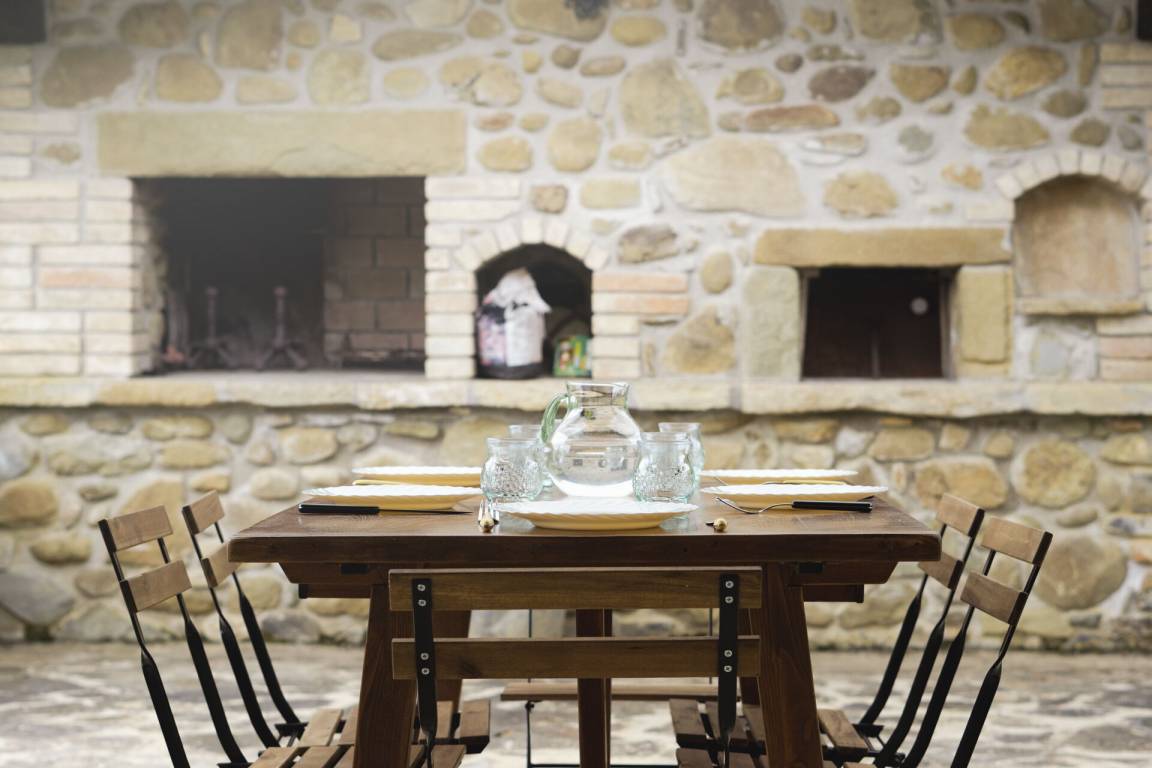 Garten: Schwimmbad (privat, Breite: 6m, Länge: 12m, Tiefe: 1.5m, Außen), Grill, Außenbereich für das Essen im Freien, Esstisch (Personen: 8), Gartenmöbel, Sonnenliege, eingezäunt.