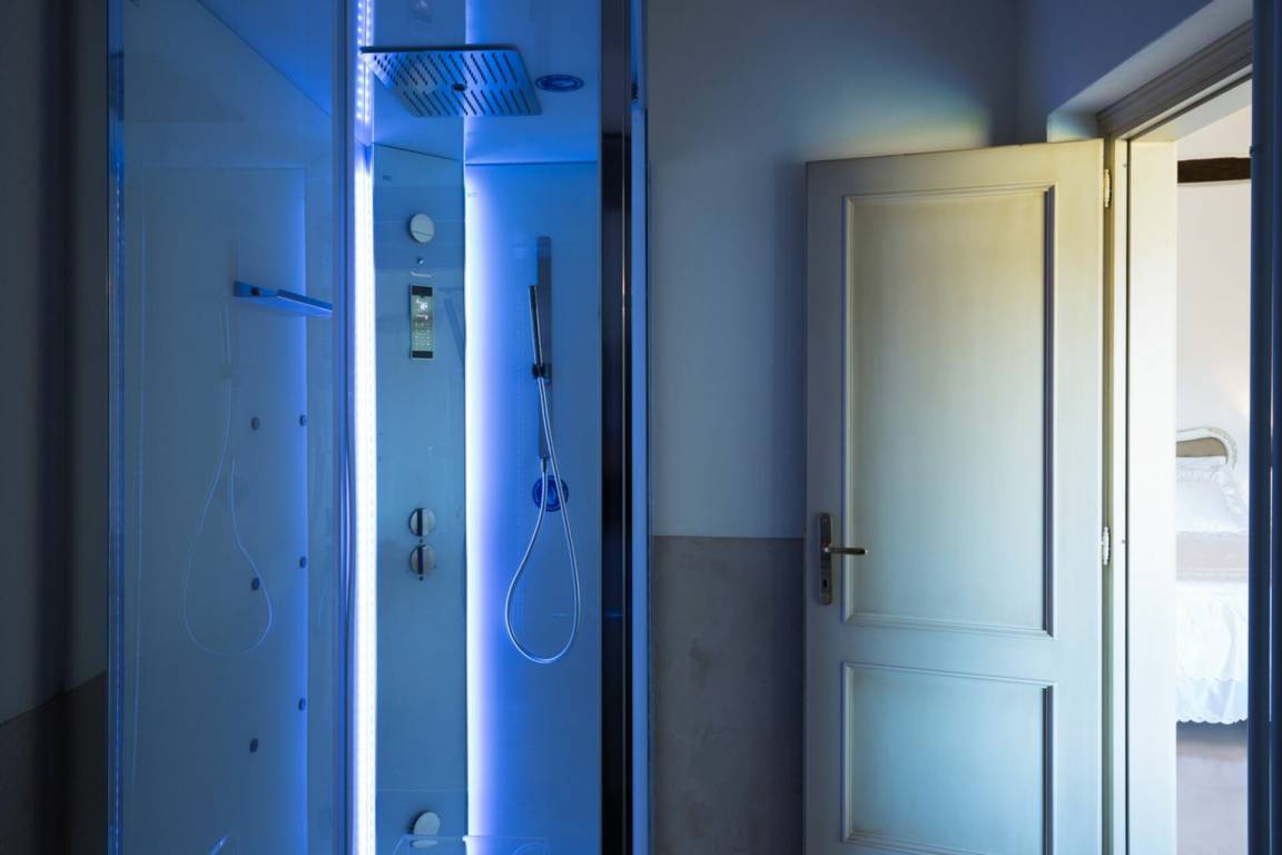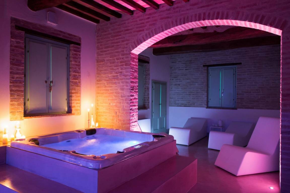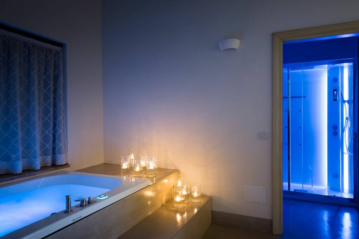 Wellnessbereich: Heißwasser-Whirlpool im Haus, Dusche, Sauna, Dampfbad.
