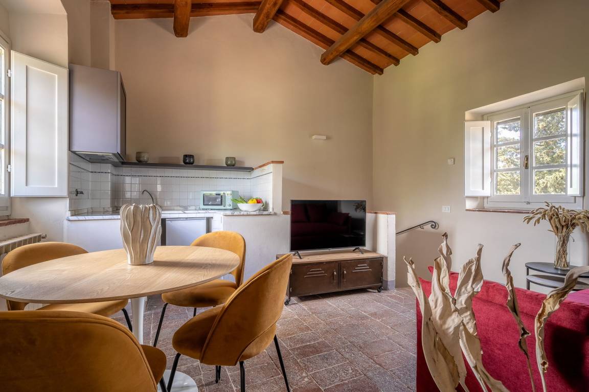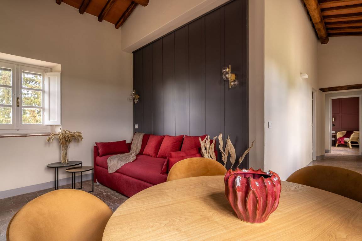 Relais Badia a Passignano - Appartamento Cabernet (65 m²) ist eine zwei-Zimmer Wohneinheit, die auf eins Stockwerk gebaut ist, mit eins Badezimmer. Hier können bis zu vier Leute schlafen.