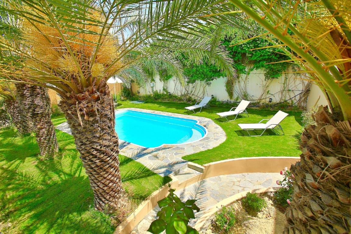 Garten: Schwimmbad (privat, Breite: 4m, Länge: 7m, Tiefe: 1.4m, Außen), Dusche, Gartenmöbel, Sonnenliege.