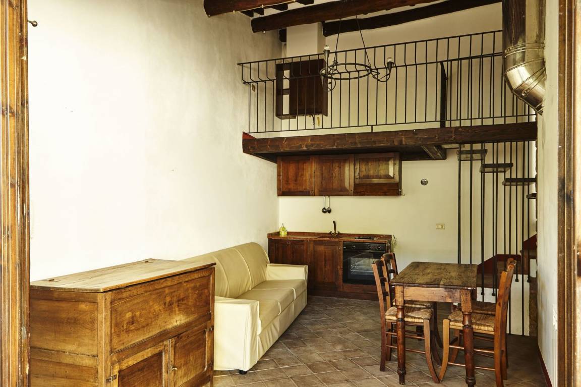 Forno ist eine eins-Zimmer Wohneinheit, die auf zwei Etagen gebaut ist, mit eins Badezimmer. Hier können bis zu zwei Gäste unterkommen.