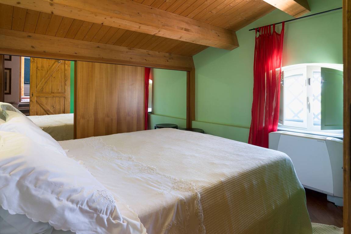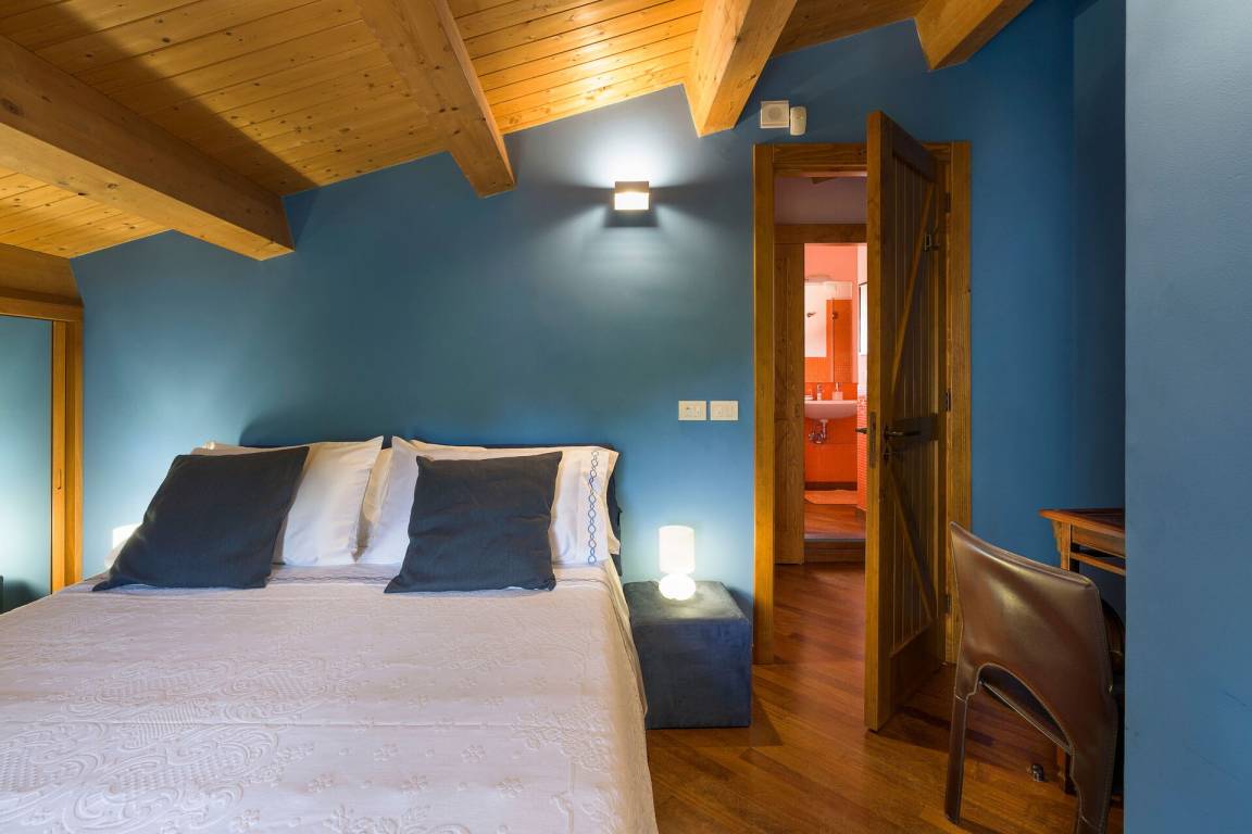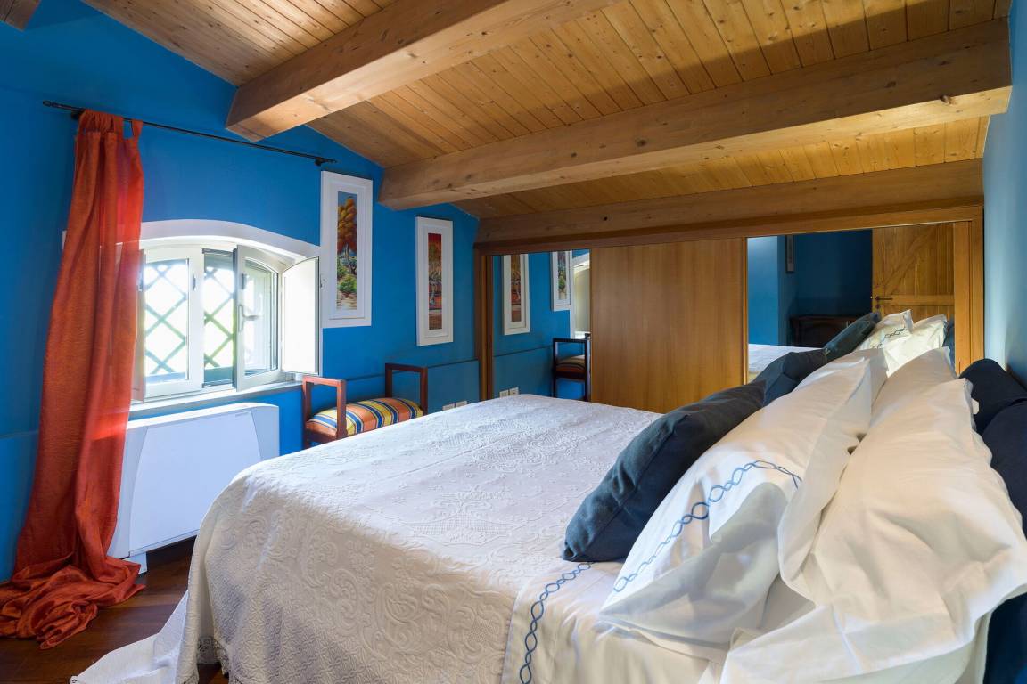 Schlafzimmer mit Bad: Doppelbett, Krippe, WiFi Internet, Internet, Klimaanlage, TV, Sessel, Doppelwaschbecken, WC, Bidet, Badewanne, Dusche.