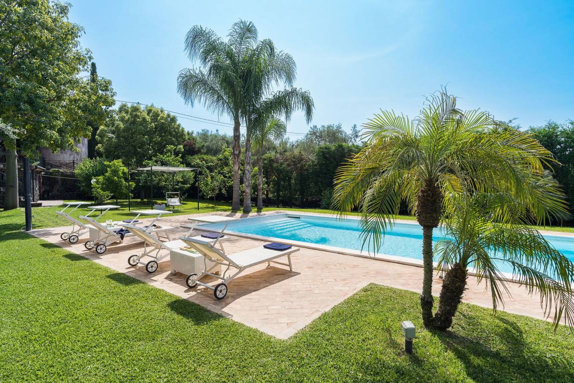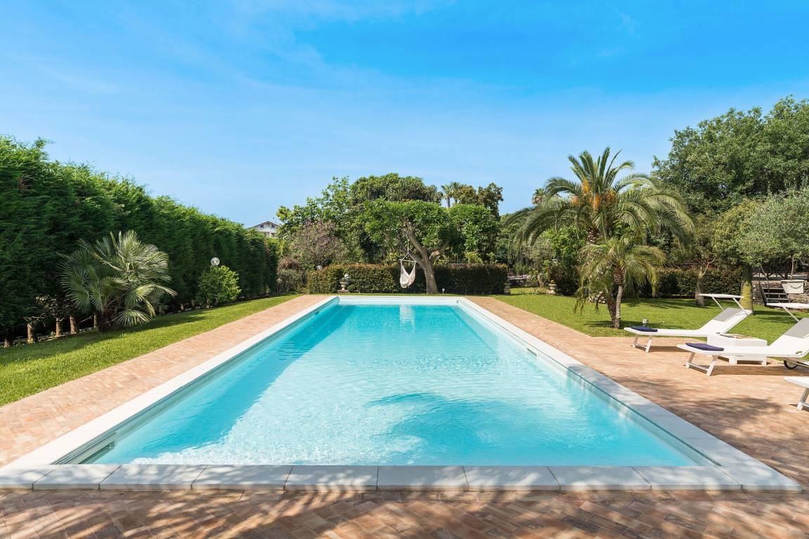 Garten: Schwimmbad (privat, Breite: 5m, Länge: 18m, max. Tiefe: 2m, min. Tiefe: 1m, Außen), Dusche, WiFi Internet, Gartenmöbel, vier Sonnenliegen.