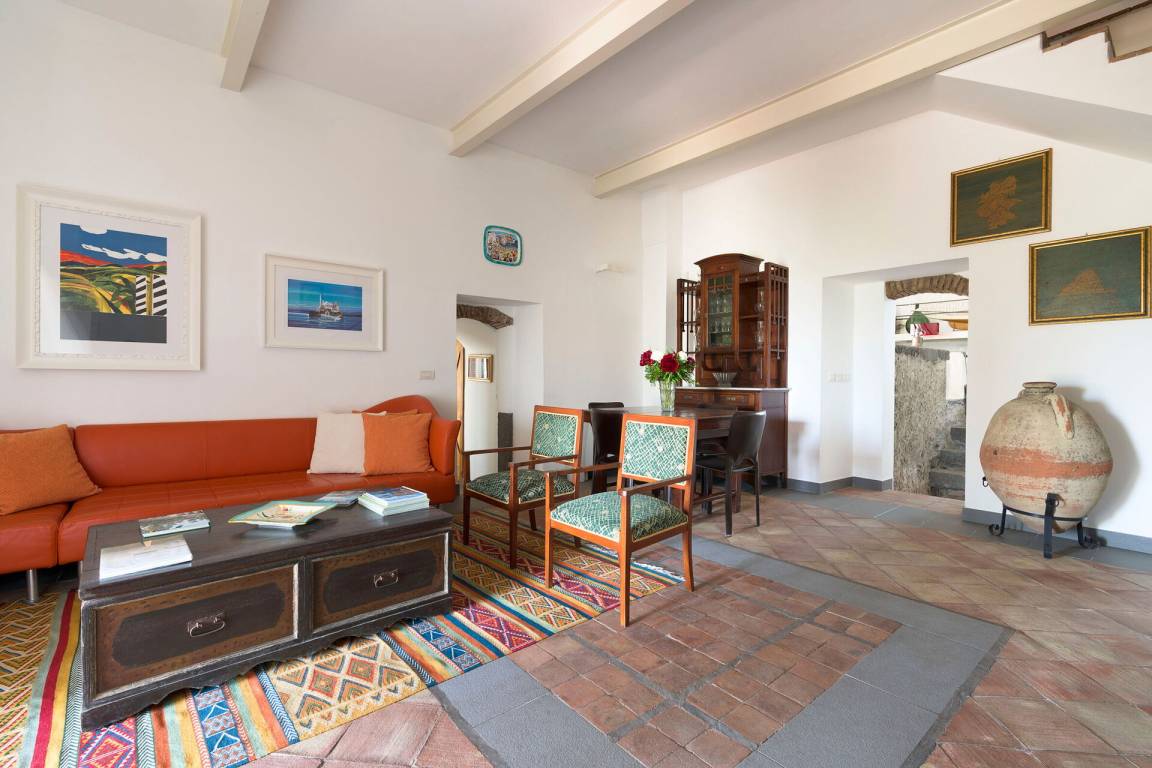 Wohnzimmer: drei Sofas (Personen: 8), zwei Sessel, Kamin, Esstisch (Personen: 6), WiFi Internet, Internet, Klimaanlage, TV.