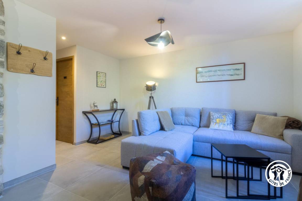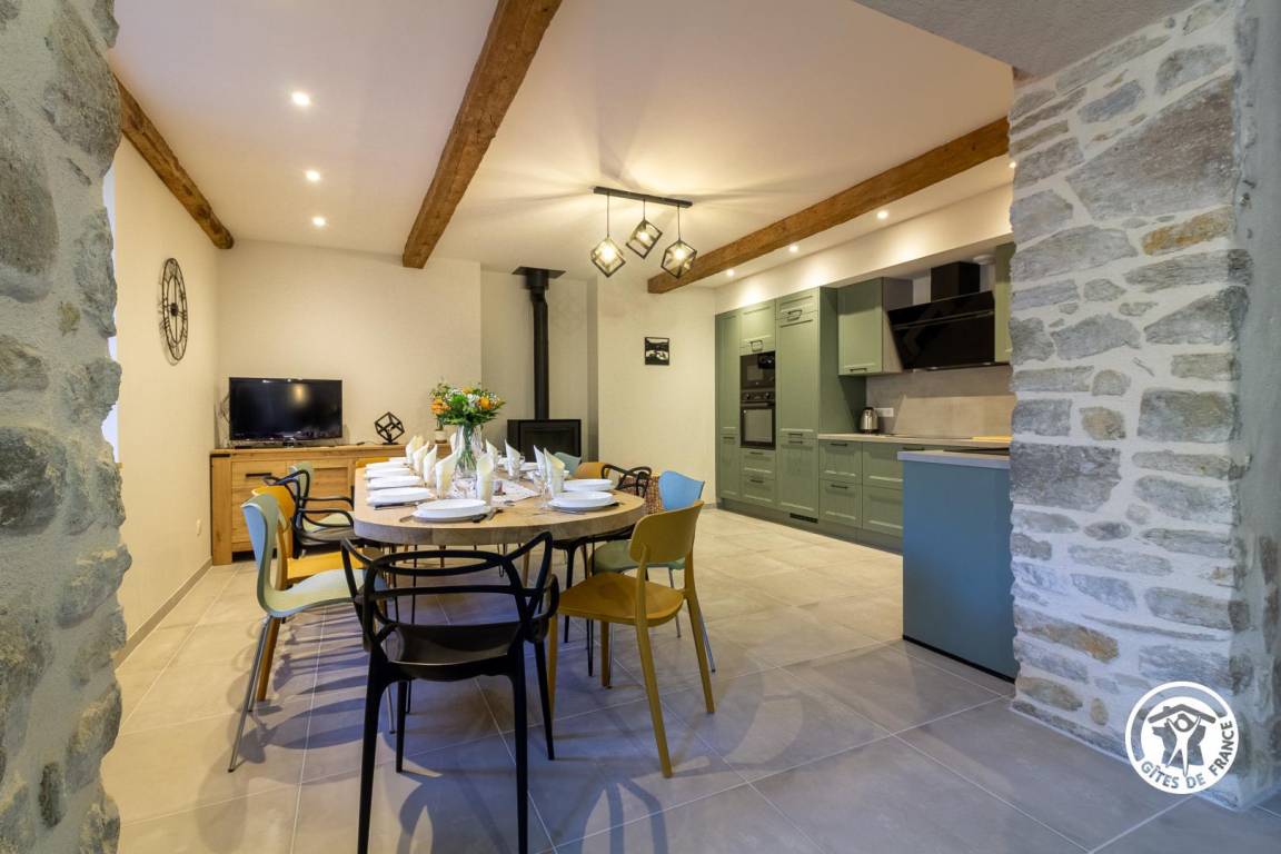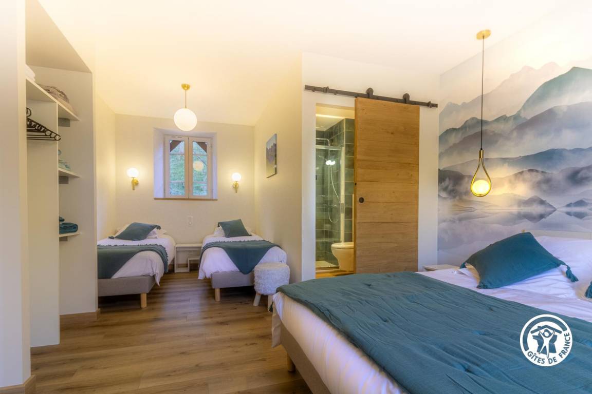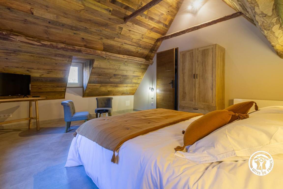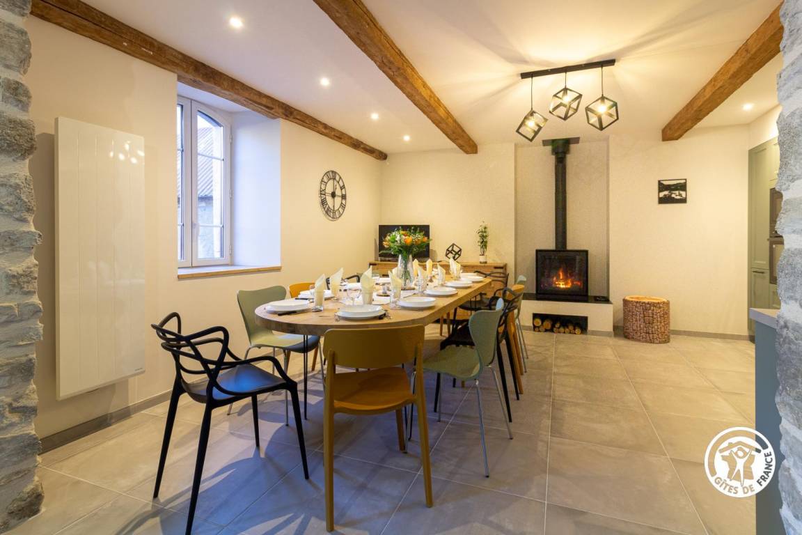 „Le gîte, rénové avec goût, est magnifique, très confortable et parfaitement équipé. Il est au calme, avec une belle vue sur les montagnes. Nous avons apprécié que toutes les chambres soient dotées de WC et douche. Le poêle était également très agréable !Le jacuzzi est un vrai plus, surtout en hiver: Se prélasser dans une eau à 38° dans la nuit avec les illuminations, c'était top ! Un accueil chaleureux pour parfaire le tout. Nous avons passé un excellent Noël en famille avec, cerise sur le gâteau, un peu de neige !“