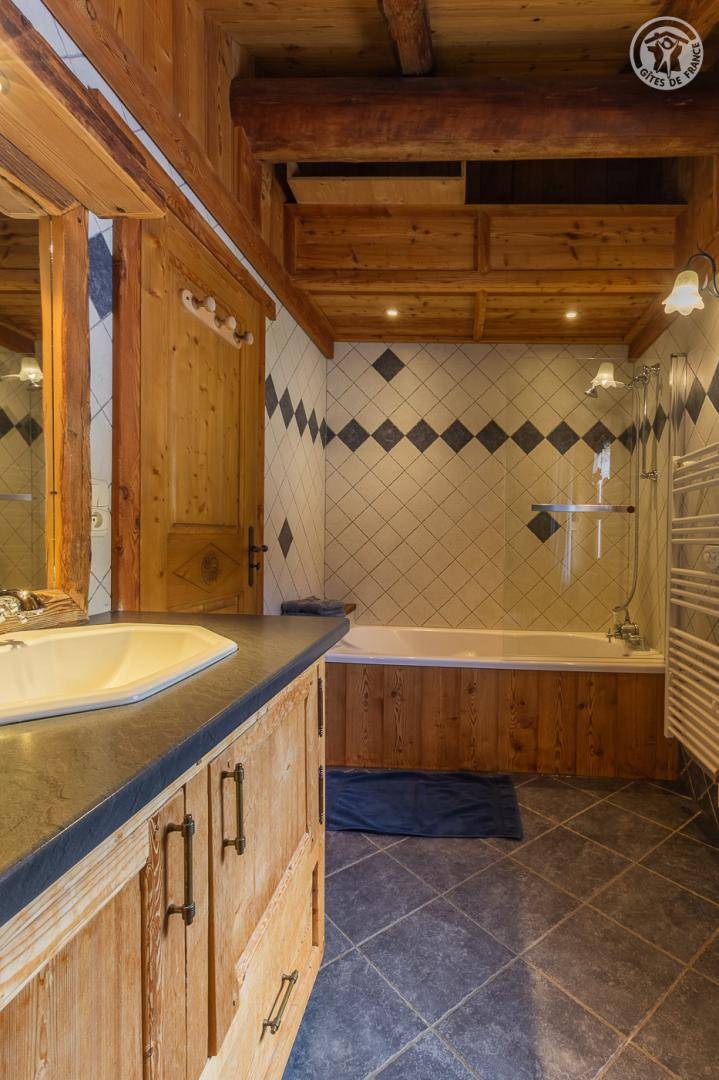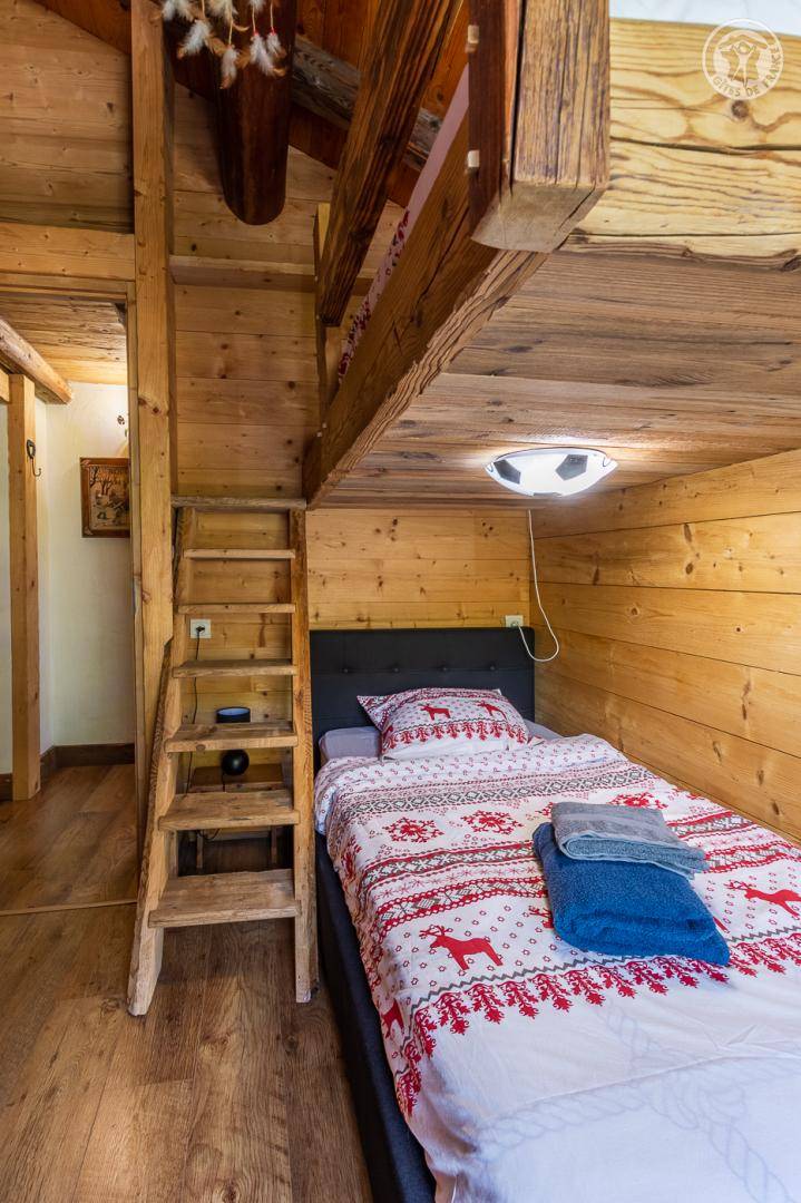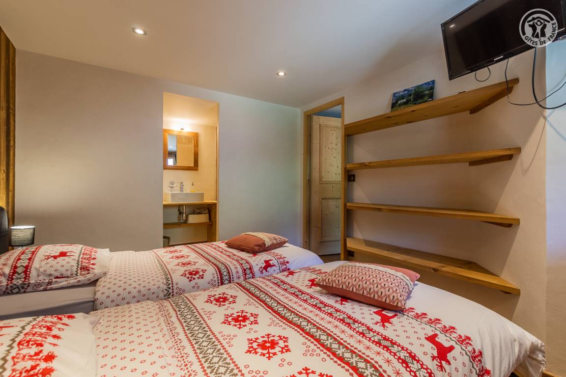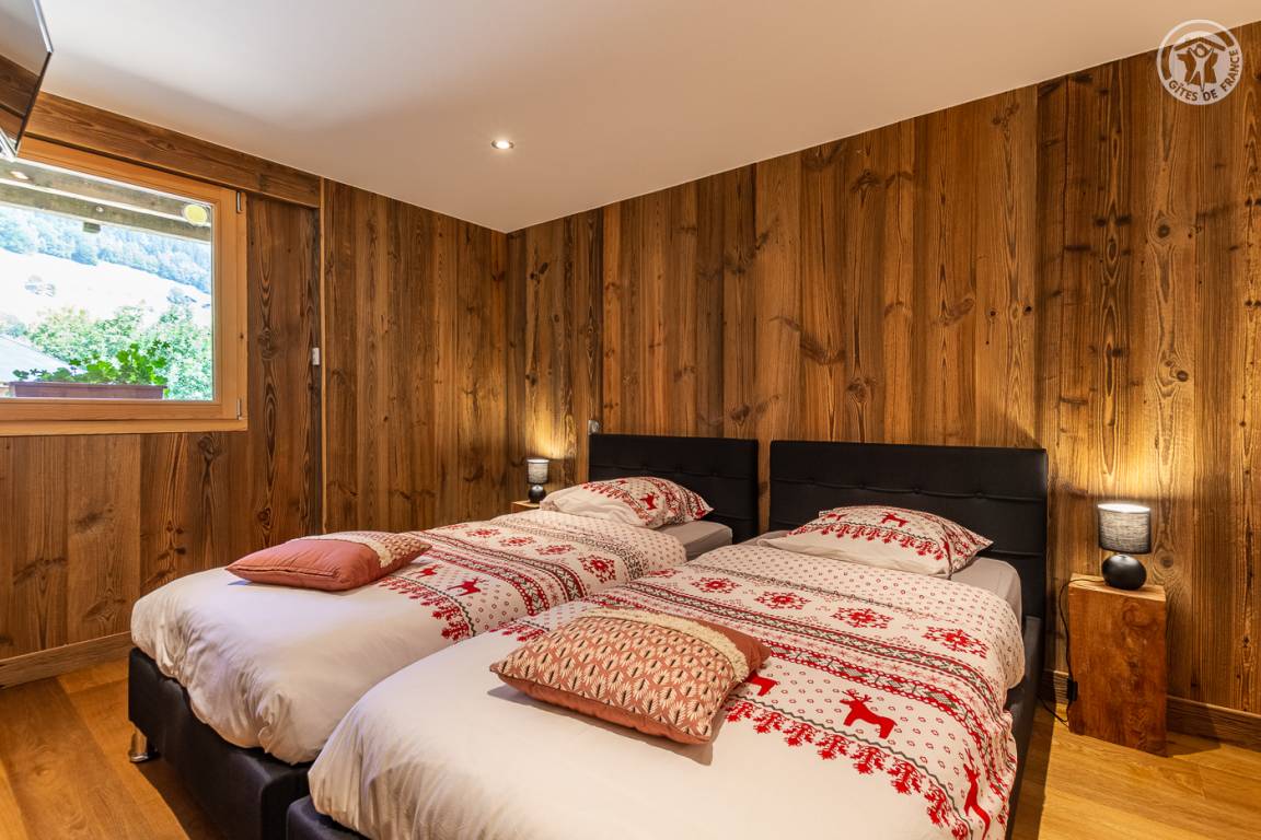 Einfamilienhaus auf 3 Ebenen mit kleinem Garten, 2 Terrassen, Innenhof und Garage (1 Stellplatz). Im Erdgeschoss: Eingang, Skiraum, Wellnessbereich mit Sauna (gegen Gebühr) mit direktem Zugang zur Terrasse, 1 Schlafzimmer (2 Einzelbetten 90x190 cm) mit Duschbad (Dusche + WC). Im 1. Stock: Wohnzimmer mit Zugang zur Balkonterrasse, Küche, WC (mit Waschbecken), Waschküche. Im 2. Stock: 3 Schlafzimmer (1 Doppelbett 160 x 200 cm / 2 Etagenbetten 90 x 190 cm / 1 Einzelbett 120 x 190 cm mit Mezzanine-Spielbereich), Bürobereich auf dem Flur, Badezimmer (Badewanne + WC). Spa-Option: 50 € / Tag