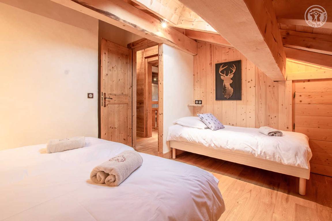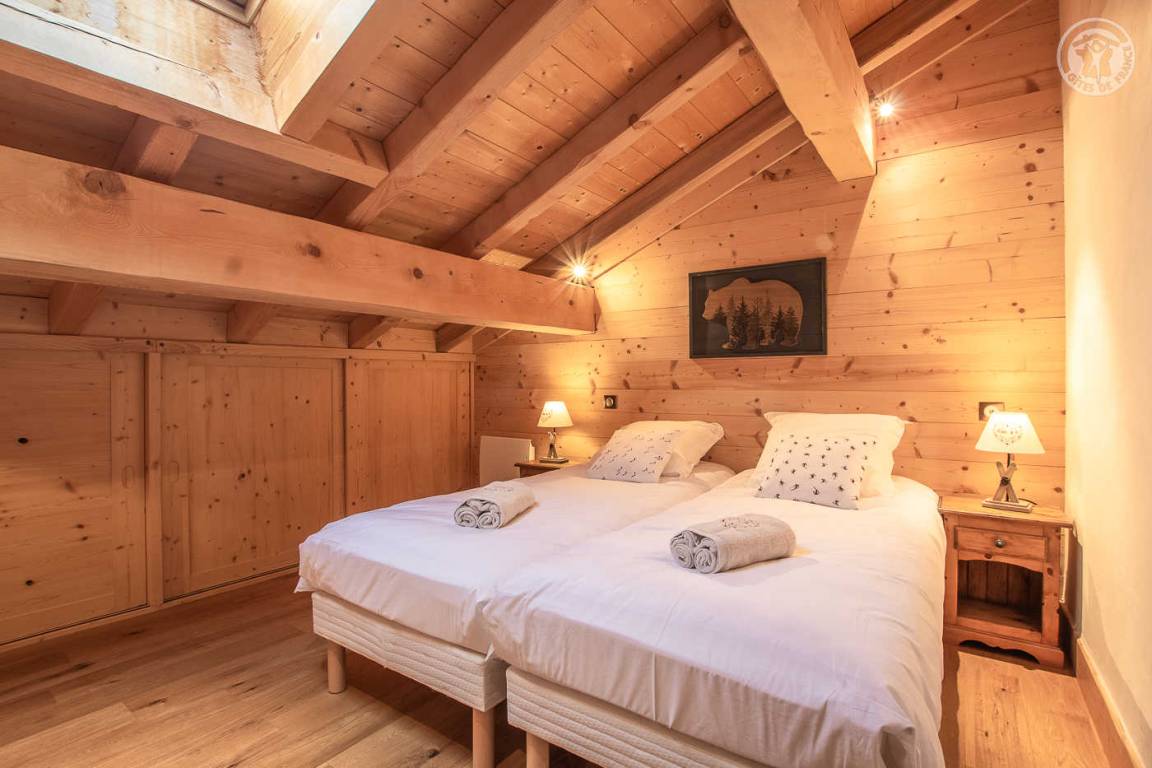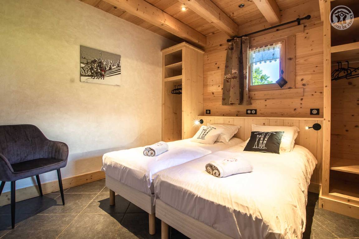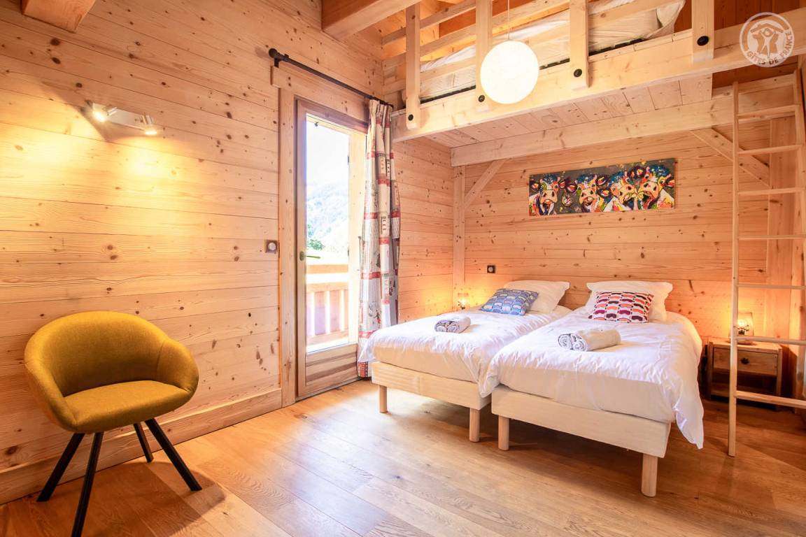 Unabhängiges Chalet neben dem Chalet der Eigentümer. Auf zwei Ebenen. Im Erdgeschoss (auf einer Ebene): Wohnzimmer (Terrasse), Küche, 2 Schlafzimmer (1 Doppelbett 140x190 cm / 2 Einzelbetten 80x190 cm), Bad (Dusche), WC, Waschküche / Skiraum (Skischuhtrockner). Auf der 1. Etage: 3 Schlafzimmer ((1 Doppelbett 140x190 cm / 3 Einzelbetten 80x190 cm / 2 Einzelbetten 80x190 cm + 1 Einzelbett 120x190 cm auf der Mezzanine), 2 Bäder (Dusche), WC Reinigung privater Parkplatz inklusive, große viel, Skiraum.