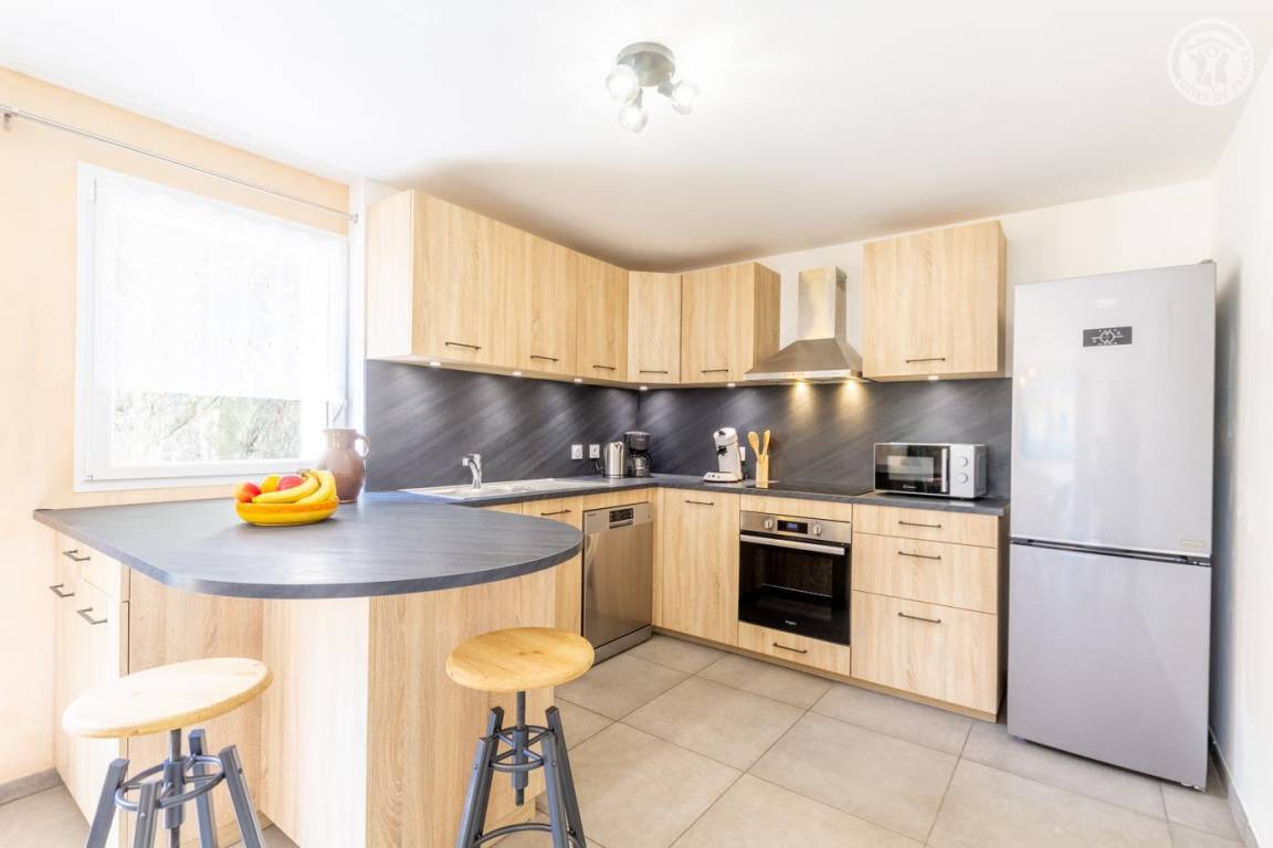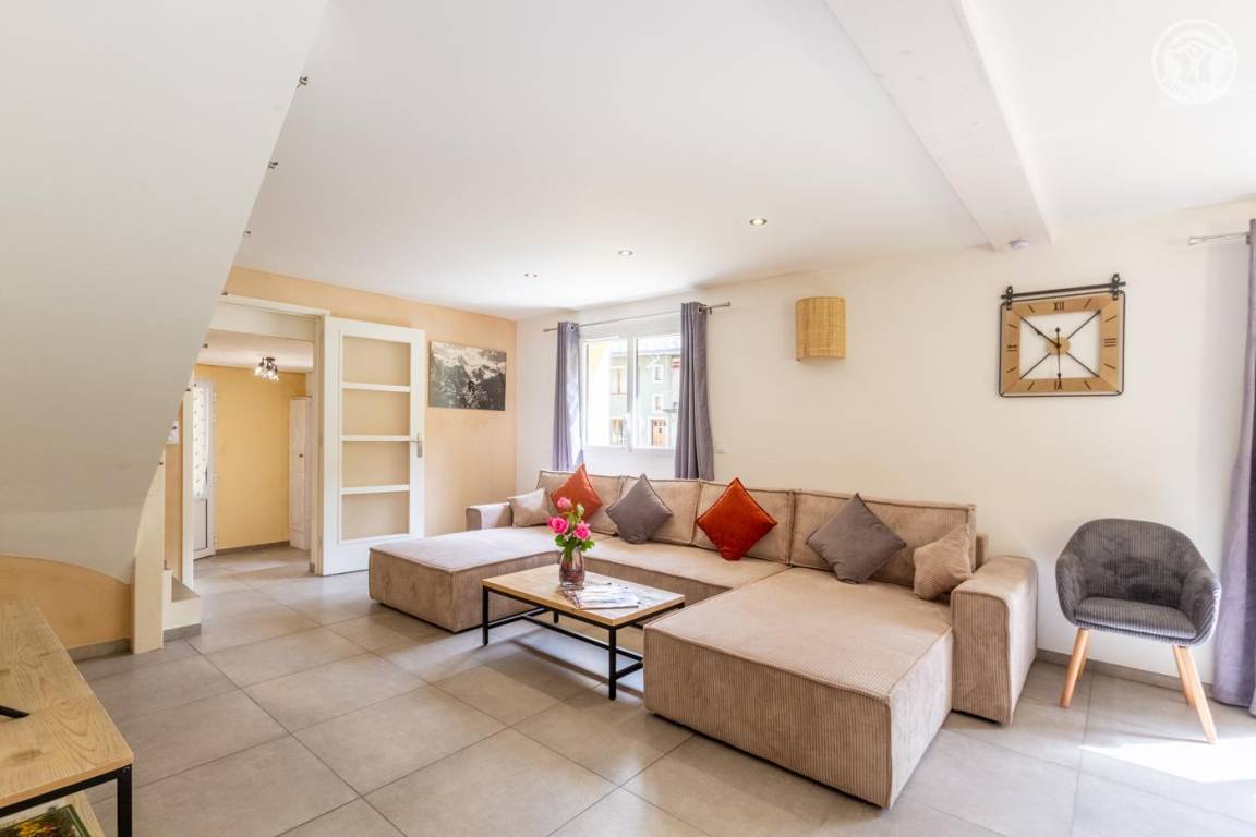 Gîte im ersten Stock eines Hauses mit weiteren Unterkünften zur ganzjährigen Vermietung. 1. Stock: Eingang, separates WC, Wohnzimmer-Küche mit Zugang zu einer Balkonterrasse, 1 Schlafzimmer mit Bad (Dusche) (1 Doppelbett 160x200 cm). 2. Etage: 3 Schlafzimmer (1 Doppelbett 160x200 cm / 2 Einzelbetten 90x190 cm / 2 Einzelbetten 90x190 cm), Badezimmer (ebenerdige Dusche), separates WC. Balkon - Terrasse. Öffentlicher Parkplatz 100 Meter entfernt. Fußgängerzugang zur Unterkunft.
