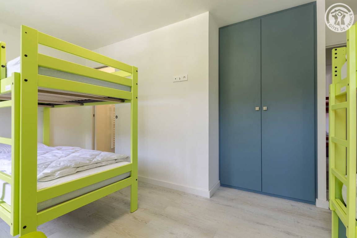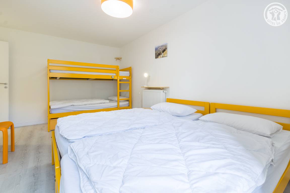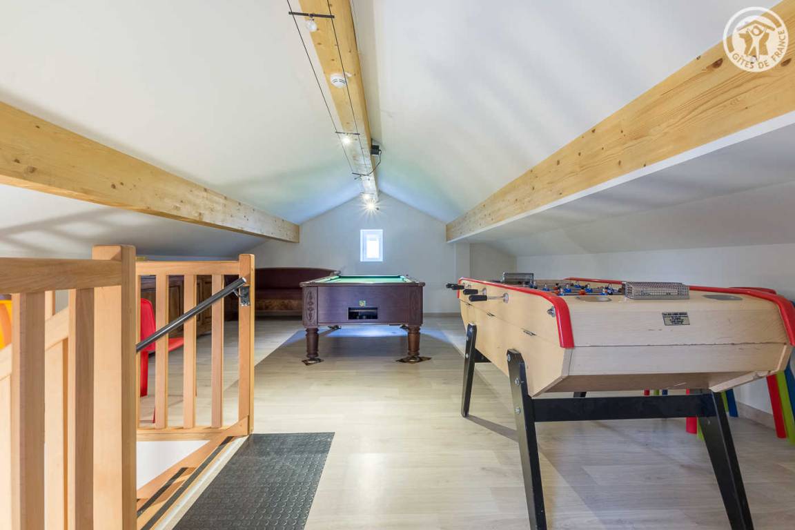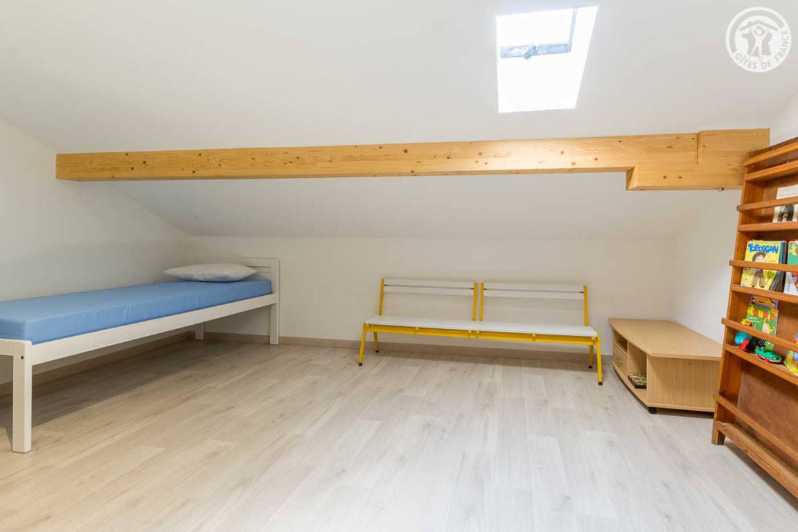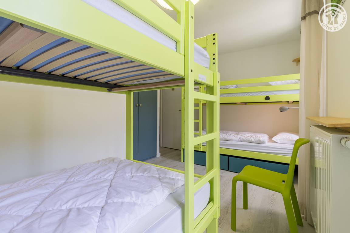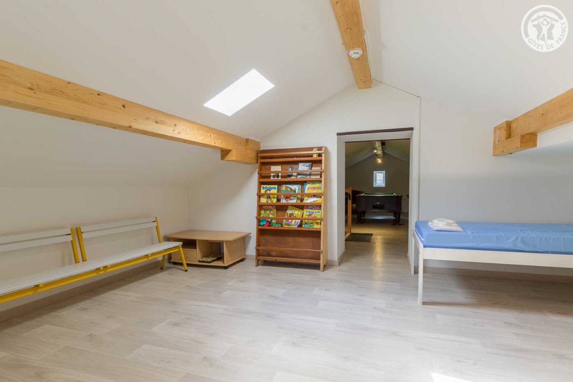 Unabhängiges Haus auf 3 Etagen. 3 private Parkplätze (davon 1 PMR), nicht umzäunter Innenhof mit Gartenmöbeln. Im Erdgeschoss: Wohnzimmer, professionelle Küche, 1 PMR Schlafzimmer (2 Einzelbetten 90x190 cm) und seine eigenes Bad (PMR Dusche + PMR WC), Speisekammer, Zugang zum Keller (lokal auf Skier, Keller, Waschküche). Auf der 1. Etage: 4 Familienzimmer mit eigenem Bad (4 Einzelbetten 90x190 cm mit 2 Etagenbetten - 4 Einzelbetten 90x190 cm , darunter 4 Koje - 2 Einzelbetten 90x190 cm Koje - 2 Einzelbetten 90x190 cm Bett) und 1 Einzelzimmer ( 1 Einzelbett 90x190 cm), 2 separate Toiletten. 2. Etage: großes Spielzimmer mit Billard, Tischfußball und Gesellschaftsspielen.