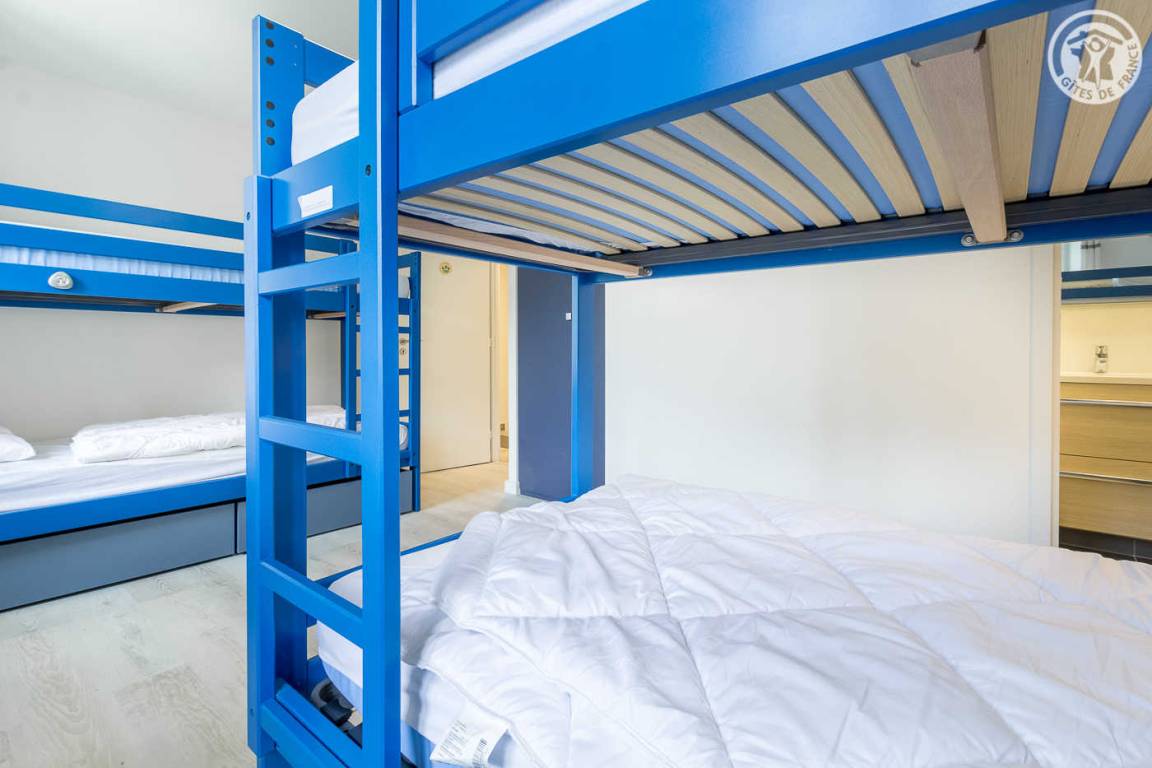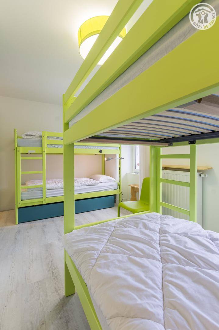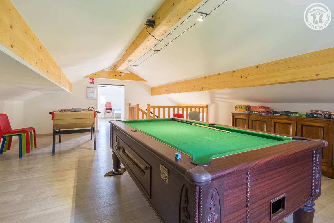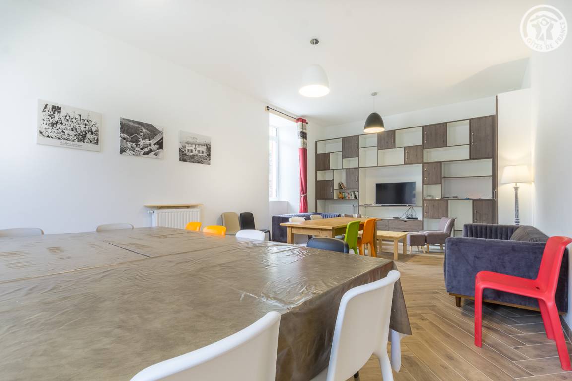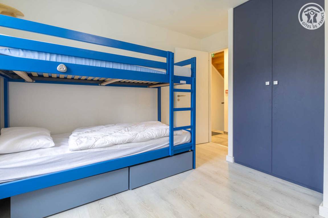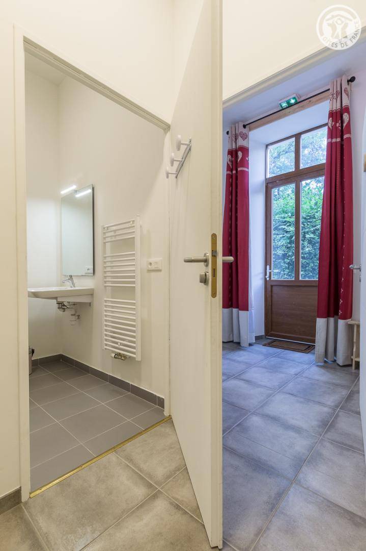 Unabhängiges Haus auf 3 Etagen. 3 private Parkplätze (davon 1 PMR), nicht umzäunter Innenhof mit Gartenmöbeln. Im Erdgeschoss: Wohnzimmer, professionelle Küche, 1 PMR Schlafzimmer (2 Einzelbetten 90x190 cm) und seine eigenes Bad (PMR Dusche + PMR WC), Speisekammer, Zugang zum Keller (lokal auf Skier, Keller, Waschküche). Auf der 1. Etage: 4 Familienzimmer mit eigenem Bad (4 Einzelbetten 90x190 cm mit 2 Etagenbetten - 4 Einzelbetten 90x190 cm , darunter 4 Koje - 2 Einzelbetten 90x190 cm Koje - 2 Einzelbetten 90x190 cm Bett) und 1 Einzelzimmer ( 1 Einzelbett 90x190 cm), 2 separate Toiletten. 2. Etage: großes Spielzimmer mit Billard, Tischfußball und Gesellschaftsspielen.