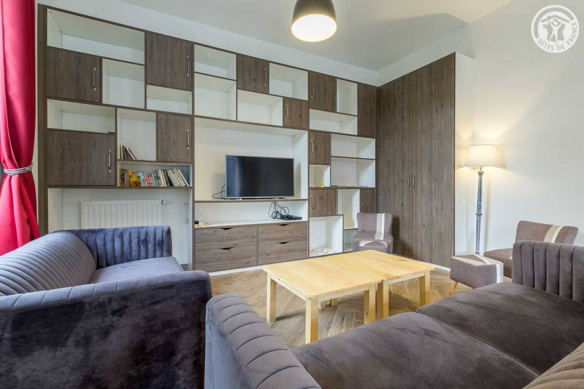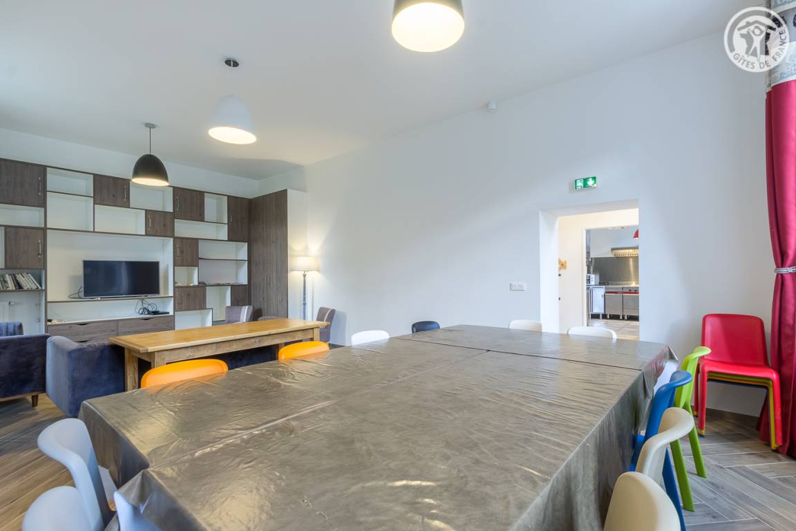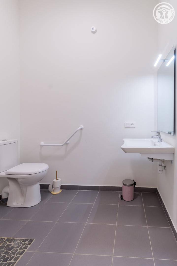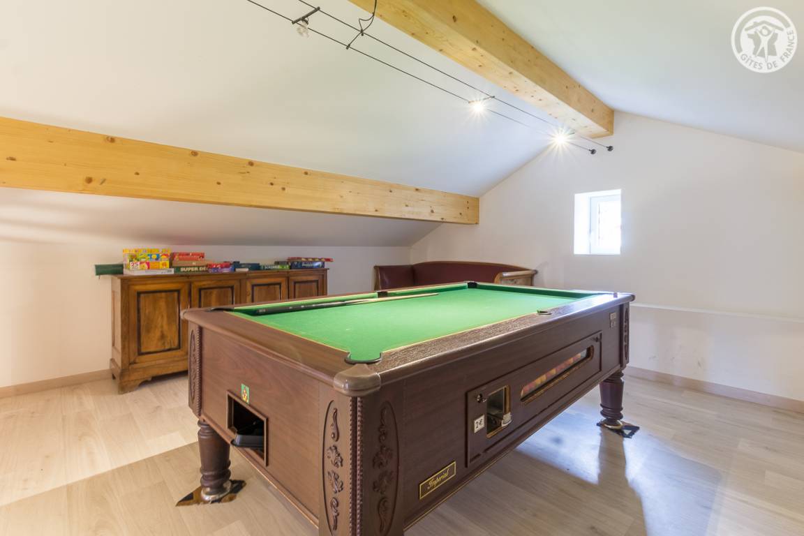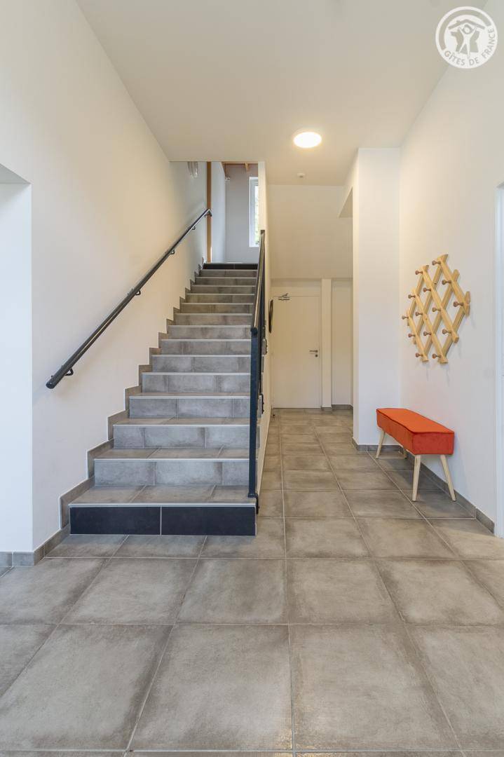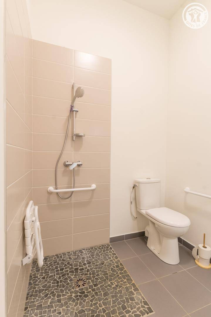 Unabhängiges Haus auf 3 Etagen. 3 private Parkplätze (davon 1 PMR), nicht umzäunter Innenhof mit Gartenmöbeln. Im Erdgeschoss: Wohnzimmer, professionelle Küche, 1 PMR Schlafzimmer (2 Einzelbetten 90x190 cm) und seine eigenes Bad (PMR Dusche + PMR WC), Speisekammer, Zugang zum Keller (lokal auf Skier, Keller, Waschküche). Auf der 1. Etage: 4 Familienzimmer mit eigenem Bad (4 Einzelbetten 90x190 cm mit 2 Etagenbetten - 4 Einzelbetten 90x190 cm , darunter 4 Koje - 2 Einzelbetten 90x190 cm Koje - 2 Einzelbetten 90x190 cm Bett) und 1 Einzelzimmer ( 1 Einzelbett 90x190 cm), 2 separate Toiletten. 2. Etage: großes Spielzimmer mit Billard, Tischfußball und Gesellschaftsspielen.